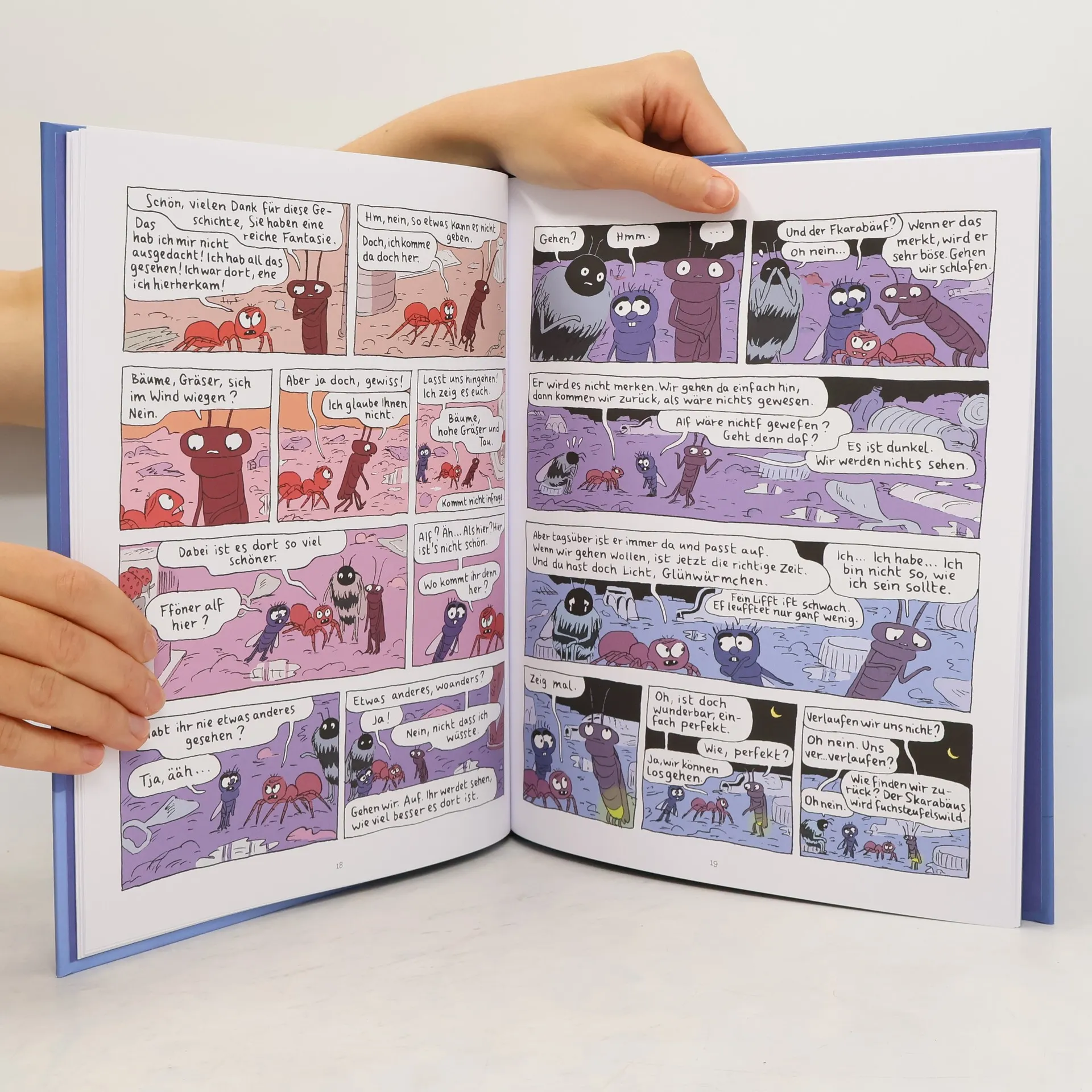 Es ist nicht leicht, eine kleine Spinne zu sein, wenn man keinerlei Talent zum Weben hat. Damit sie endlich lernt, wie man schöne Netze macht, gibt ihre Mutter sie in die Obhut des gestrengen Herrn Skarabäus, der im Ruf steht, noch die talentloseste „Katastrophe“ von Kind auf Trab zu bringen. In Herrn Skarabäus' trostloser Schule lernt die kleine Spinne eine Fliege kennen, die ihrer Zähne wegen „lifpeld“, eine Hummel, die nicht aufhören kann zu weinen und ein Glühwürmchen, das nur schummrig leuchtet. Gemeinsam beschließen sie zu fliehen, auf der Suche nach einem schöneren Ort. Ein Abenteuer, das sie weit mehr lehren wird, als Herr Skarabäus und sein Drill: glücklich zu sein. Humorvoll und empathisch erzählen Marzena Sowa und Dorothée de Monfreid von jenen, die nicht wie die anderen sind und deshalb nur zu rasch ins Abseits gedrängt werden. Ihre kleine Schicksalsgemeinschaft lebt vor, dass vermeintliche „Fehler“ auch eine große Stärke ausmachen können.