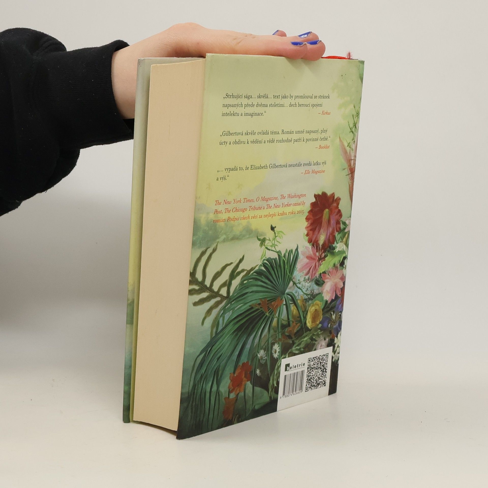 Román sleduje osudy nadané Almy Whittakerové (dcery smělého a charismatického botanického objevitele), jež se snaží osamostatnit ve světě rostlin a vědy. Zatímco studium mechů vede Almu blíž a blíž k záhadám evoluce, muž, kterého miluje, ji táhne opačným směrem – do království duchovna, božství a zázraků. Alma je střízlivá vědkyně, Ambrose je snivý umělec. Spojuje je však láska k vědění – zoufalá touha pochopit fungování tohoto světa a principy všeho bytí. Podpis všech věcí je důležitý román o důležitém století. Strhující, do detailu propracovaný příběh se odehrává ve všech koutech světa – od Londýna po Peru, Filadelfii, Tahiti či Amsterodam. Je napsán s odvážným a zvídavým duchem jedinečné doby. Alma Whittakerová je svědkem historických událostí a zároveň je sama jejich tvůrkyní. Kráčí po hranici osvícenství a moderní doby a dozajista si získá sympatie čtenářů z celého světa.