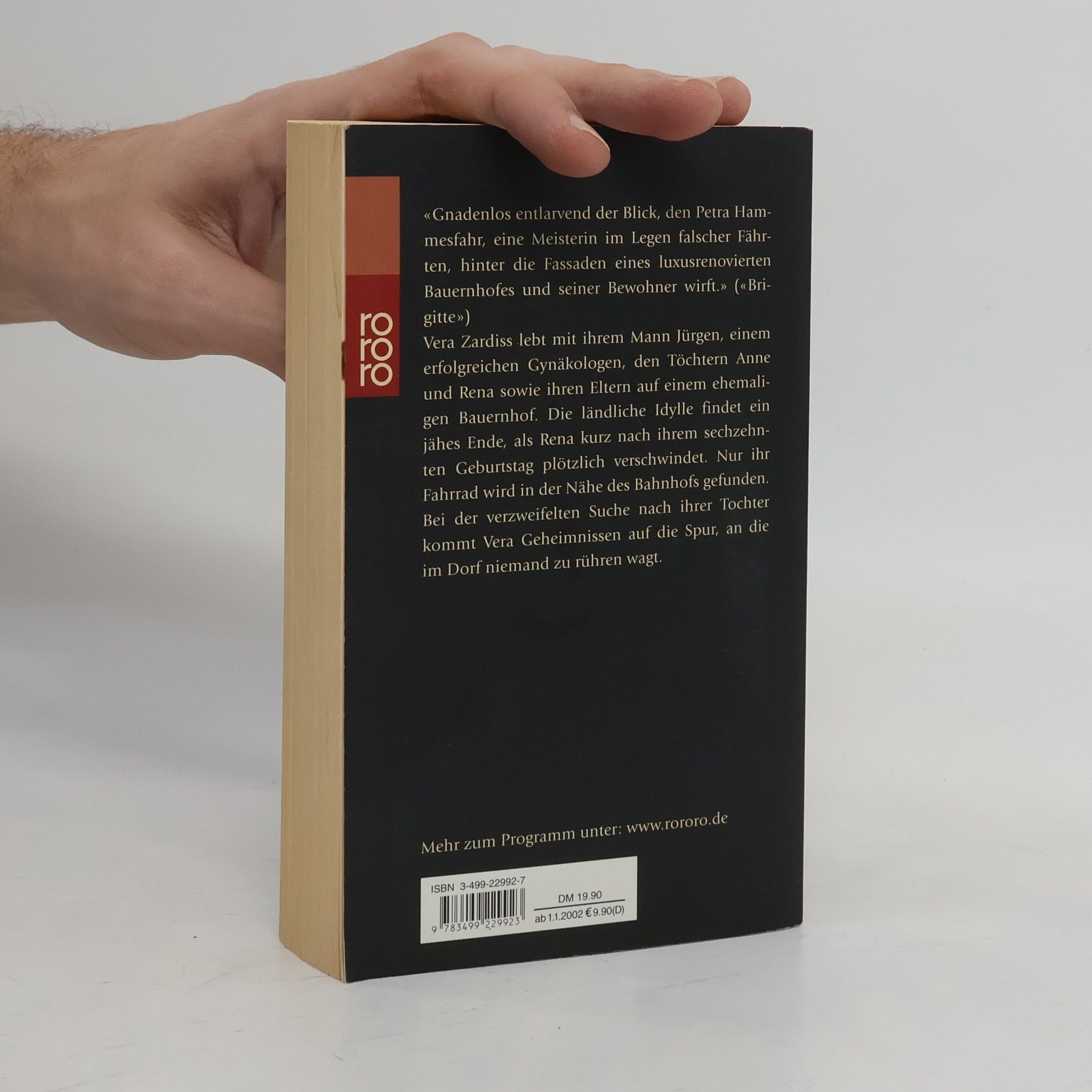 «Gnadenlos entlarvend der Blick, den Petra Hammesfahr, eine Meisterin im Legen falscher Fährten, hinter die Fassaden eines luxusrenovierten Bauernhofes und seiner Bewohner wirft.» («Brigitte»)Vera Zardiss lebt mit ihrem Mann Jürgen, einem erfolgreichen Gynäkologen, den Töchtern Anne und Rena sowie ihren Eltern auf einem ehemaligen Bauernhof. Die ländliche Idylle findet ein jähes Ende, als Rena kurz nach ihrem sechzehnten Geburtstag plötzlich verschwindet. Nur ihr Fahrrad wird in der Nähe des Bahnhofs gefunden. Bei der verzweifelten Suche nach ihrer Tochter kommt Vera Geheimnissen auf die Spur, an die im Dorf niemand zu rühren wagt.