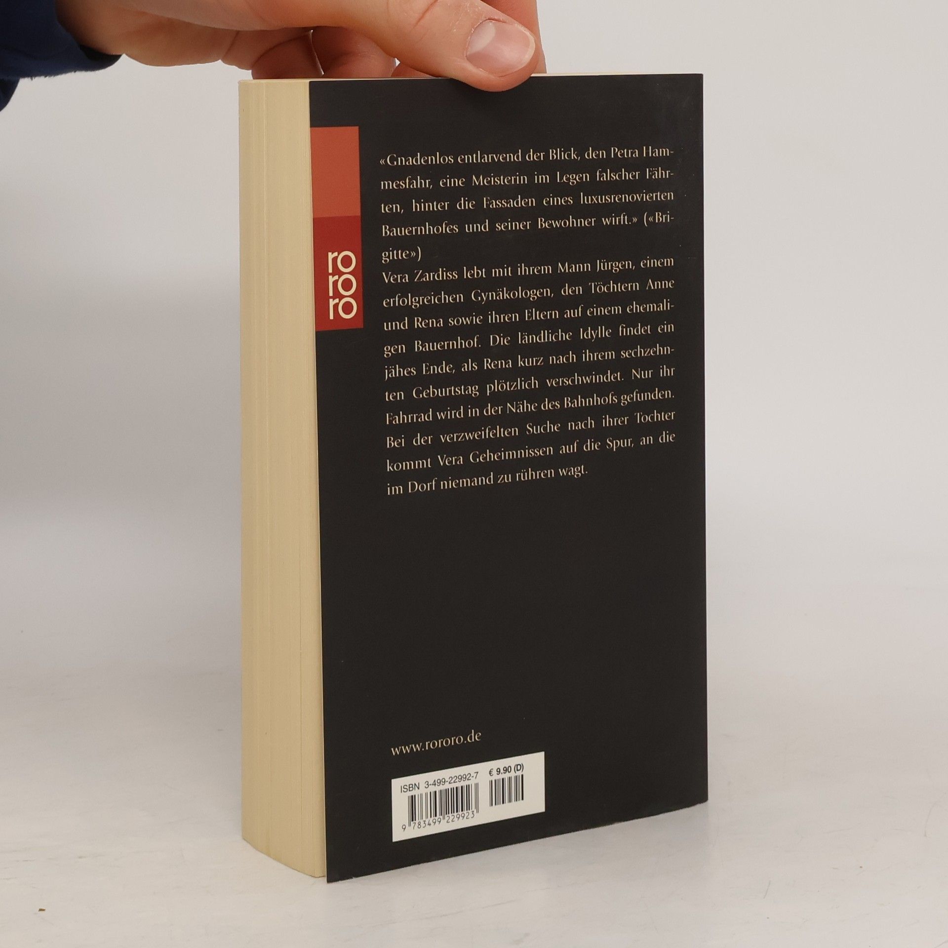 «Gnadenlos entlarvend der Blick, den Petra Hammesfahr, eine Meisterin im Legen falscher Fährten, hinter die Fassaden eines luxusrenovierten Bauernhofes und seiner Bewohner wirft.» («Brigitte»)Vera Zardiss lebt mit ihrem Mann Jürgen, einem erfolgreichen Gynäkologen, den Töchtern Anne und Rena sowie ihren Eltern auf einem ehemaligen Bauernhof. Die ländliche Idylle findet ein jähes Ende, als Rena kurz nach ihrem sechzehnten Geburtstag plötzlich verschwindet. Nur ihr Fahrrad wird in der Nähe des Bahnhofs gefunden. Bei der verzweifelten Suche nach ihrer Tochter kommt Vera Geheimnissen auf die Spur, an die im Dorf niemand zu rühren wagt.