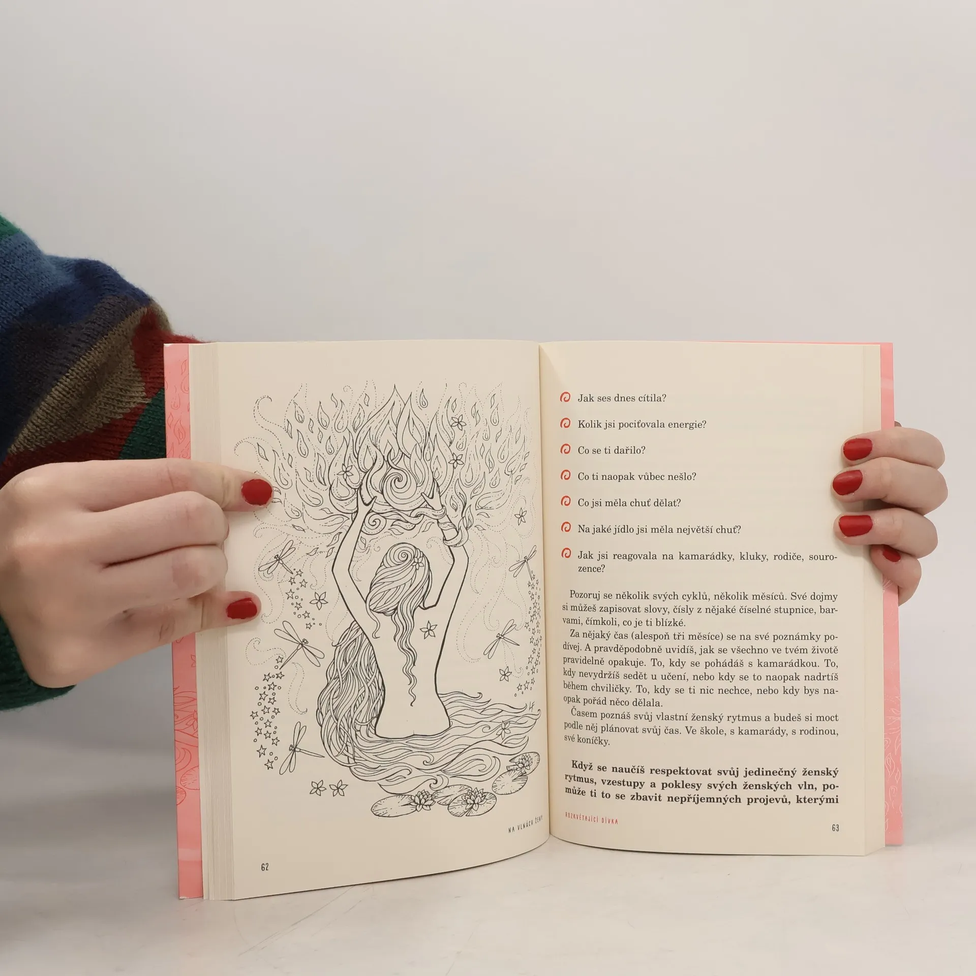Kniha Na vlnách ženy přináší zcela nový pohled na ženský cyklus. Pohled, který jednou provždy změní tvůj život! Ale nečekej další nudnou hodinu biologie. Tentokrát se na to podíváme hravě, s humorem a současně s velkým respektem a něhou. A zapojíme do toho i tvou představivost a další smysly! Ženský cyklus není jen o menstruačním krvácení a schopnosti rodit děti. Je to tvá nejhlubší ženská podstata, tvá schopnost vdechnout život čemukoli, co si budeš přát. Tvé proměnlivé ženské schopnosti, tvá nekonečná síla. Tvoje výkyvy a proměny jsou způsobené kolísavou hladinou ženských hormonů ve tvém těle, tvými ženskými vlnami. Ale nemusíš se jimi nechat každý měsíc bezmocně vláčet. Můžeš je vědomě ovládnout a elegantně na nich surfovat. Jak na to se naučíš v této knize, která je z jedné strany určená pro dívky a z druhé pro ženy. Tak si připrav svoje surfovací prkno, vyplouváme! První část knihy je určená dívkám, ale zvu i tebe, milá ženo, ať ti je 20, 40, 60 či 80 let, abys knihu začala číst z této strany. Vrátíš se do doby kolem 10. roku života a všechno si to prožiješ znovu jako ta malá holka, kterou jsi jednou byla. Ale s novou emocí! Až si přečteš první část, obrátíš knihu vzhůru nohama a budeš číst z druhé strany V té tě provedu stejnými kapitolami a tématy, ale ponoříme se do větších podrobností a souvislostí.