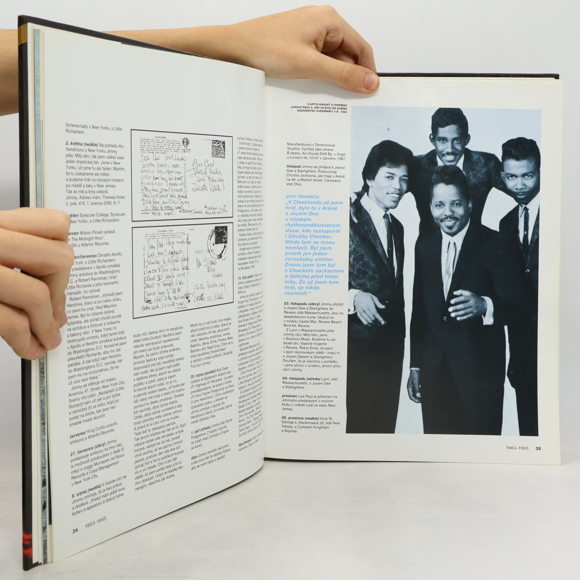 Jimi Hendrix den po dni doprovázen spoustou barevných i černobílých fotografií.