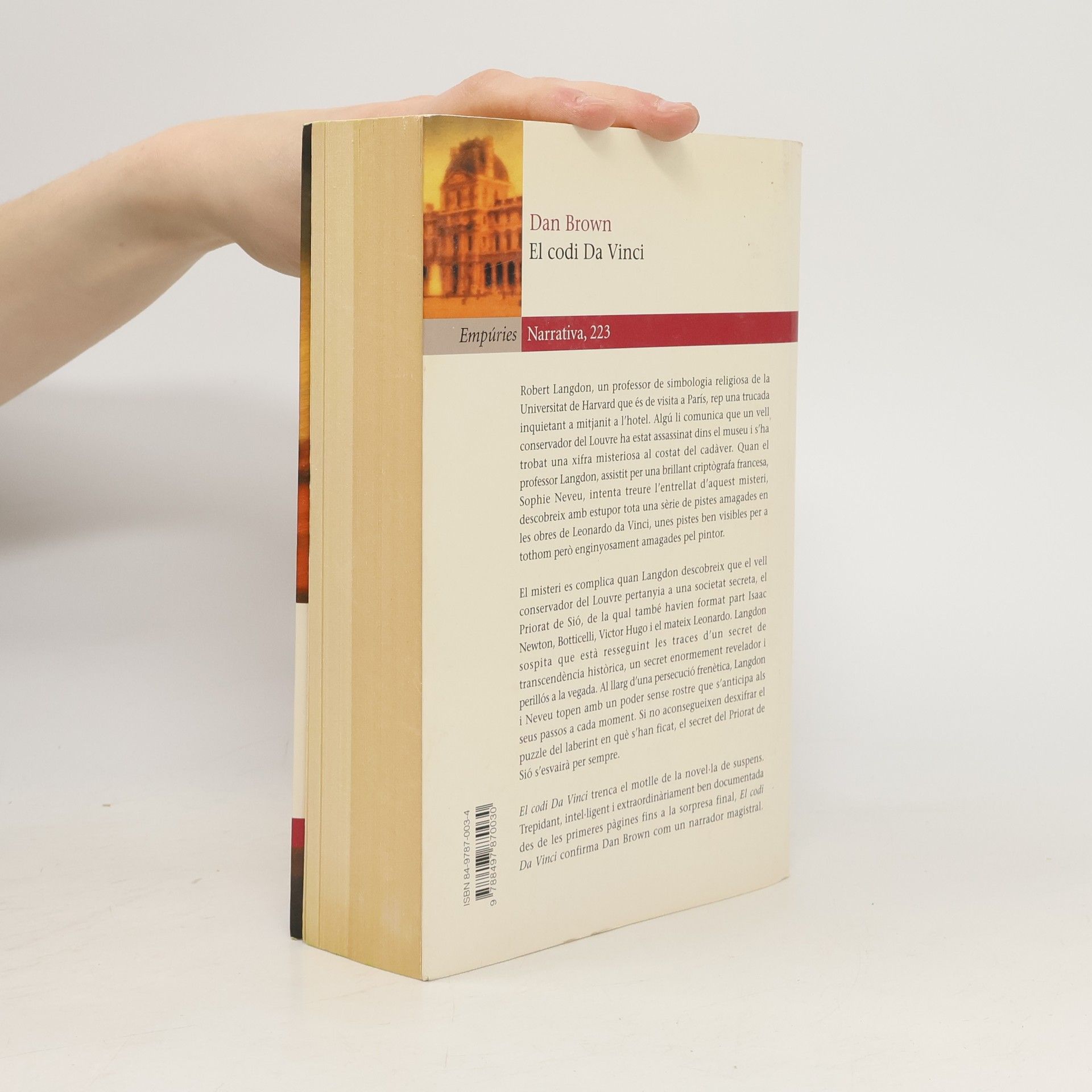Robert Langdon, un professor de simbologia religiosa de la Universitat de Harvard que és de visita a París, rep una trucada inquietant a mitjanit a l`hotel. Algú li comunica que un vell curador del Louvre ha estat assassinat a dins del museu i que s`ha trobat una xifra misteriosa al costat del cadàver. Quan el professor Langdon, assistit per una brillant criptògrafa francesa, Sophie Neveu, intenta treure l`entrellat d`aquest misteri, descobreix amb estupor tota una sèrie de pistes amagades en les obres de Da Vinci, unes pistes ben visibles per a tothom però enginyosament amagades pel pintor.El misteri es complica quan Langdon descobreix que el vell curador del Louvre pertanyia a una societat secreta de la qual també havien format part Isaac Newton, Botticelli, Victor Hugo i el mateix Da Vinci. Langdon sospita que està resseguint les traces d`un secret de transcendència històrica, un secret enormement revelador i perillós a la vegada. Al llarg d`una persecució frenètica, Langdon i Neveu topen amb un poder sense rostre que s`anticipa als seus passos contínuament. Si no aconsegueixen desxifrar el trencaclosques del laberint en què s`han ficat, el secret de la societat de Sió s`esvairà per sempre.El codi Da Vinci trenca el motlle de la novel·la de suspens. Trepidant, intel·ligent, extraordinàriament ben documentada des de les primeres pàgines fins a la sorpresa final, El codi Da Vinci confirma Dan Brown com un narrador magistral.