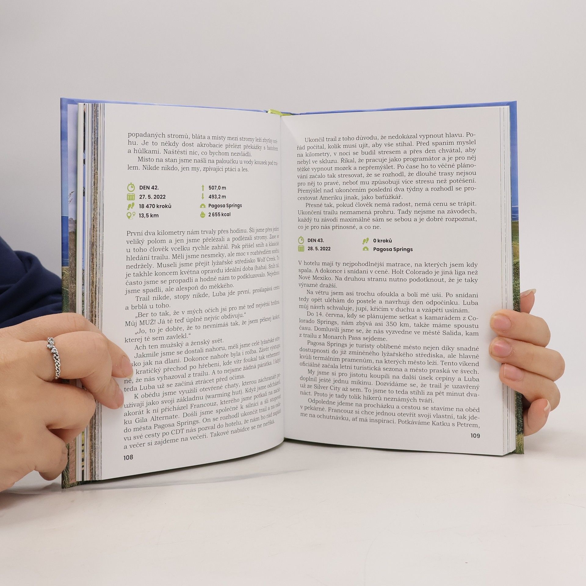 Tereza Kopecká s manželem přešli v roce 2019 Pacifickou hřebenovku. O tom vypráví autorčina první kniha V horách sNím. V roce 2022 vyrazili na druhou transamerickou trasu – na Continental Divide Trail (Stezku kontinentálního rozvodí), který vede podél oceánského rozvodí od mexické hranice ažpo kanadskou v provincii Alberta. Prošli státy Nové Mexiko, Colorado, Wyoming, Idaho a Montana. Za 160 dní ušli 3 589 km, prošlapali 4 páry bot a nastoupali 105,8 km. Autorka opět zpracovala své deníkové záznamy do knihy a doplnila je vlastními fotografiemi.