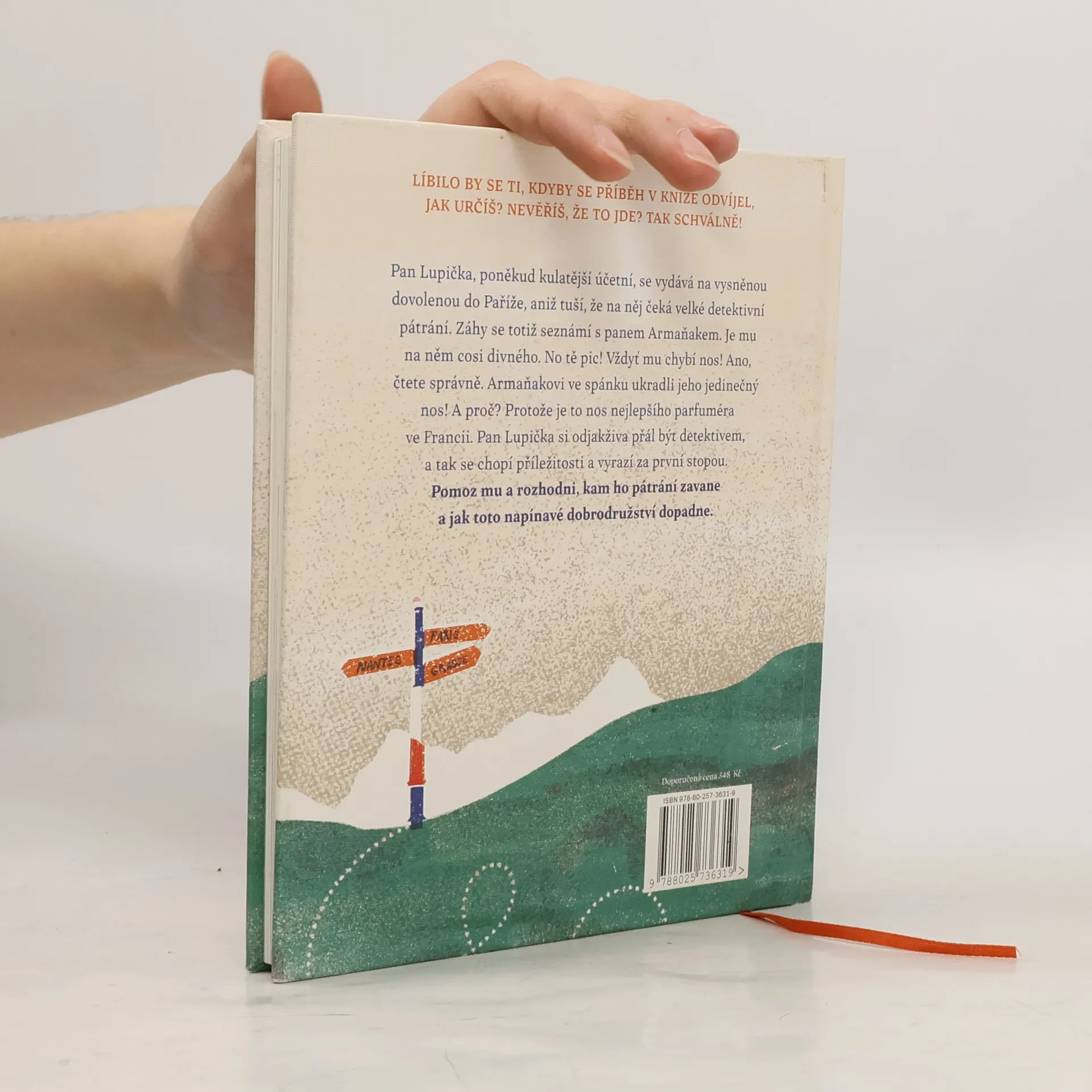Kniha je tak trochu jinak napsaná detektivka. Čtenář má při její četbě možnost ovlivnit děj: na konci kapitol se rozhoduje, jak by měl příběh dál pokračovat, a podle toho postupuje na zvolenou stranu knihy. Pan Lupička, poněkud kulatější účetní, se vydává na vysněnou dovolenou do Francie, aniž tuší, že na něj čeká velké detektivní pátrání. V jednom z příběhů se už ve vlaku seznámí s panem Armaňakem. Je mu na něm cosi divného. Aha! Chybí mu nos! Ano, čtete správně. Panu Armaňakovi v noci, ve spánku někdo ukradl jeho jedinečný, ba přímo delikátní nos. A není divu, ten nos má cenu zlata: pan Armaňak je totiž nejlepší parfumér ve Francii. A jelikož si pan Lupička odjakživa přál stát se detektivem, ujímá se případu a vydává se jako ohař za první stopou. Pátrání ho spolu s panem Armaňakem zavane do různých koutů Francie a zažijí spolu spoustu veselých i napínavých dobrodružství.