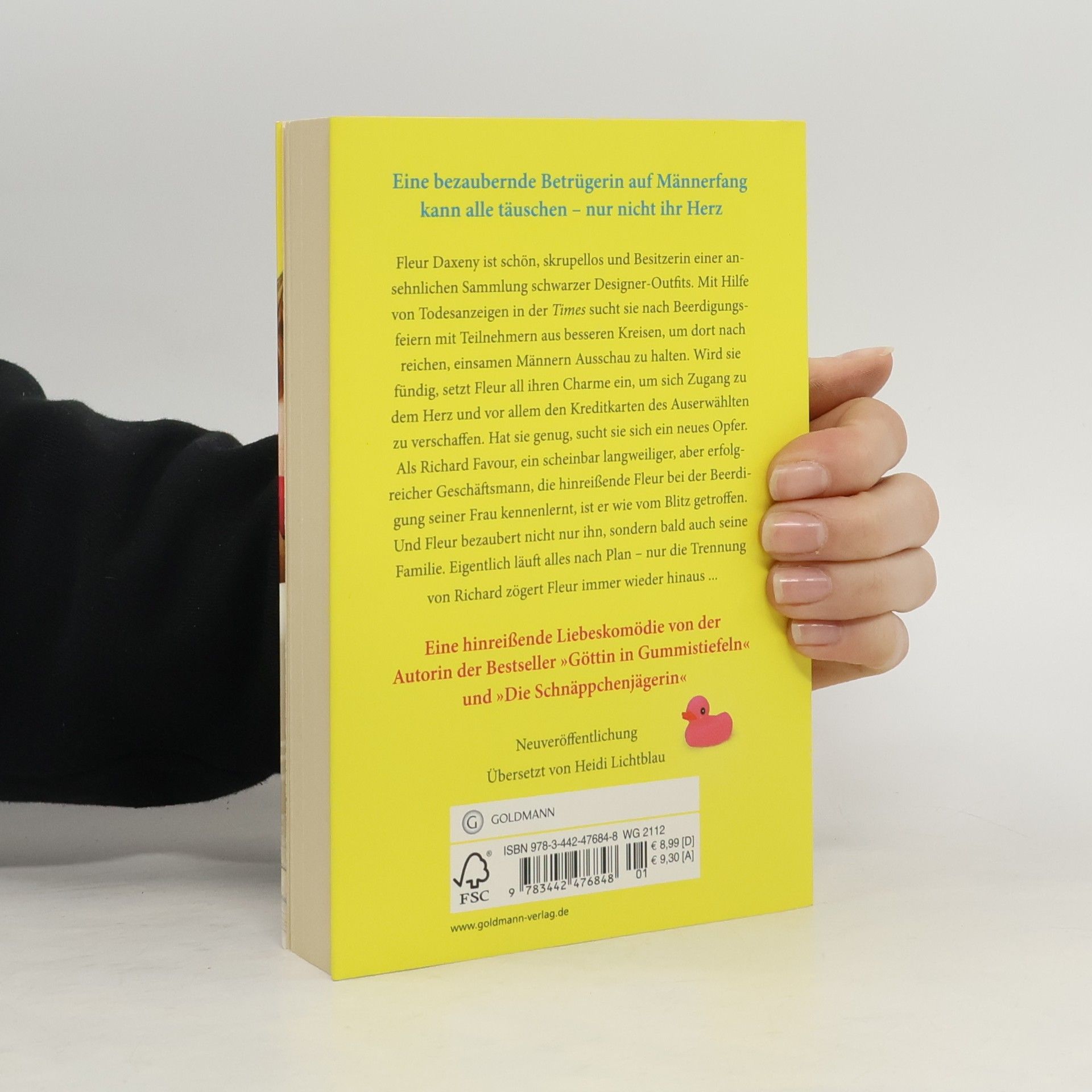 Eine bezaubernde Betrügerin auf Männerfang kann alle täuschen – nur nicht ihr Herz Fleur Daxeny ist schön, skrupellos und verfügt über eine ansehnliche Sammlung schwarzer Designer-Outfits. Mit Hilfe von Todesanzeigen in der Times sucht sie nach Beerdigungsfeiern mit Teilnehmern aus besseren Kreisen, um dort nach reichen, einsamen Männern Ausschau zu halten. Mit ihrem unwiderstehlichen Charme erschleicht sich Fleur Zugang zu deren Herz und Kreditkarten. Hat sie genug, sucht sie sich ein neues Opfer. Als Richard Favour, ein scheinbar langweiliger, aber erfolgreicher Geschäftsmann, die hinreißende Fleur bei der Beerdigung seiner Frau kennenlernt, ist er wie vom Blitz getroffen. Und Fleur bezaubert nach und nach nicht nur ihn, sondern auch seine Familie. Eigentlich läuft alles nach Plan – nur die Trennung von Richard zögert Fleur immer wieder hinaus ...