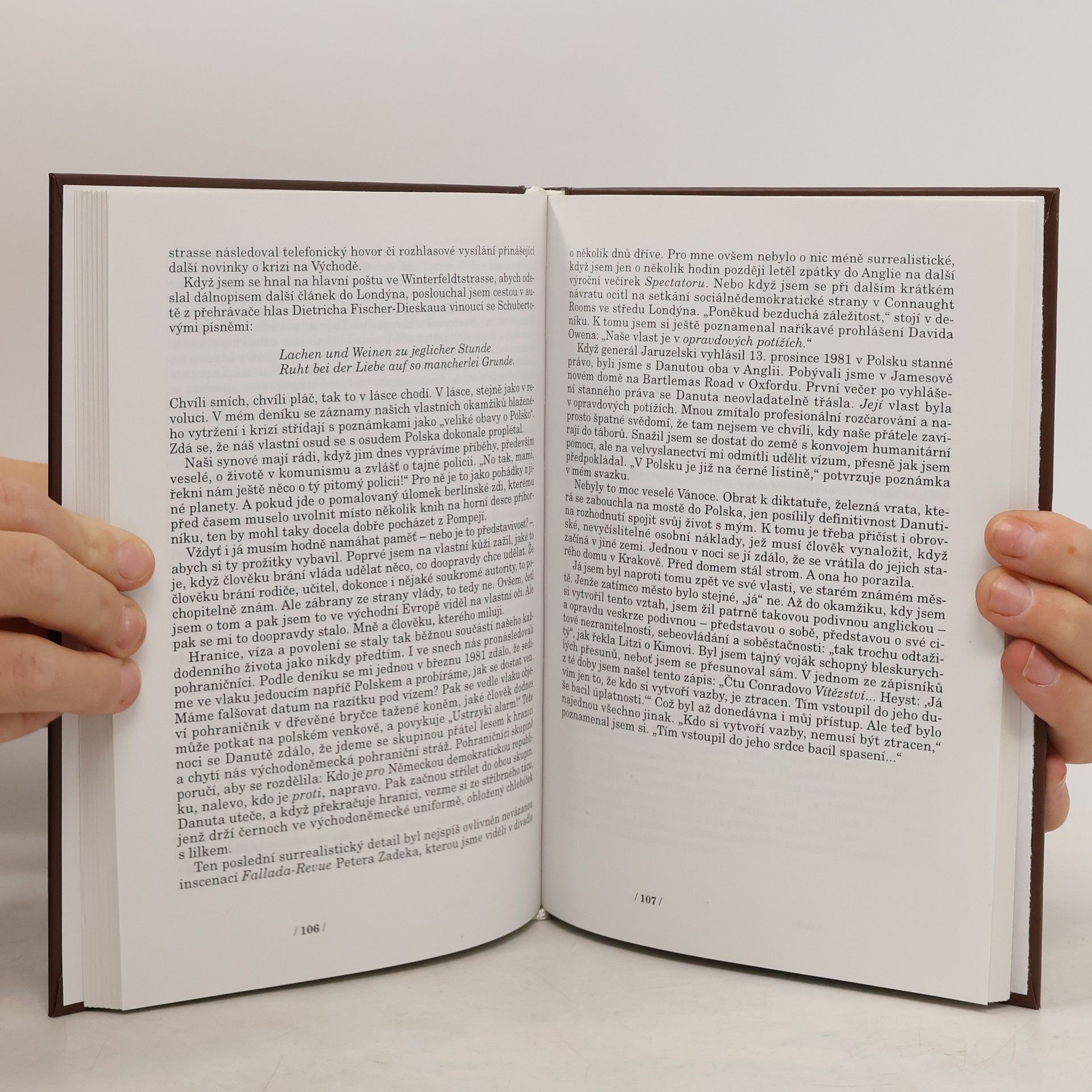 Britský autor vychází z osobního svazku, který o něm vedla tajná policie NDR Stasi a po r. 1989 měl možnost si jej prostudovat. Vrací se ke svým vzpomínkám ze 70. let, kdy jako oxfordský student měl možnost pobývat v obou částech rozděleného Berlína, konfrontuje osobní zážitky se zápisy tajné služby, rozkrývá její praxi a zejména se pokouší analyzovat život lidí v tehdejší atmosféře totality. Z pohledu člověka "z druhého břehu" se snaží pochopit psychologii spolupracovníků i odpůrců tehdejšího režimu v celé složitosti lidských osobností na pozadí historických faktů. Velmi zajímavá práce na rozhraní publicistiky a beletrie přináší osobité a nečekané postřehy o době nedávno minulé. 16.11.98 Benyovsv G3b1 České vydání autobiograficko-reportážní knihy britského historika a novináře o problematice totalitních režimů v zemích střední Evropy