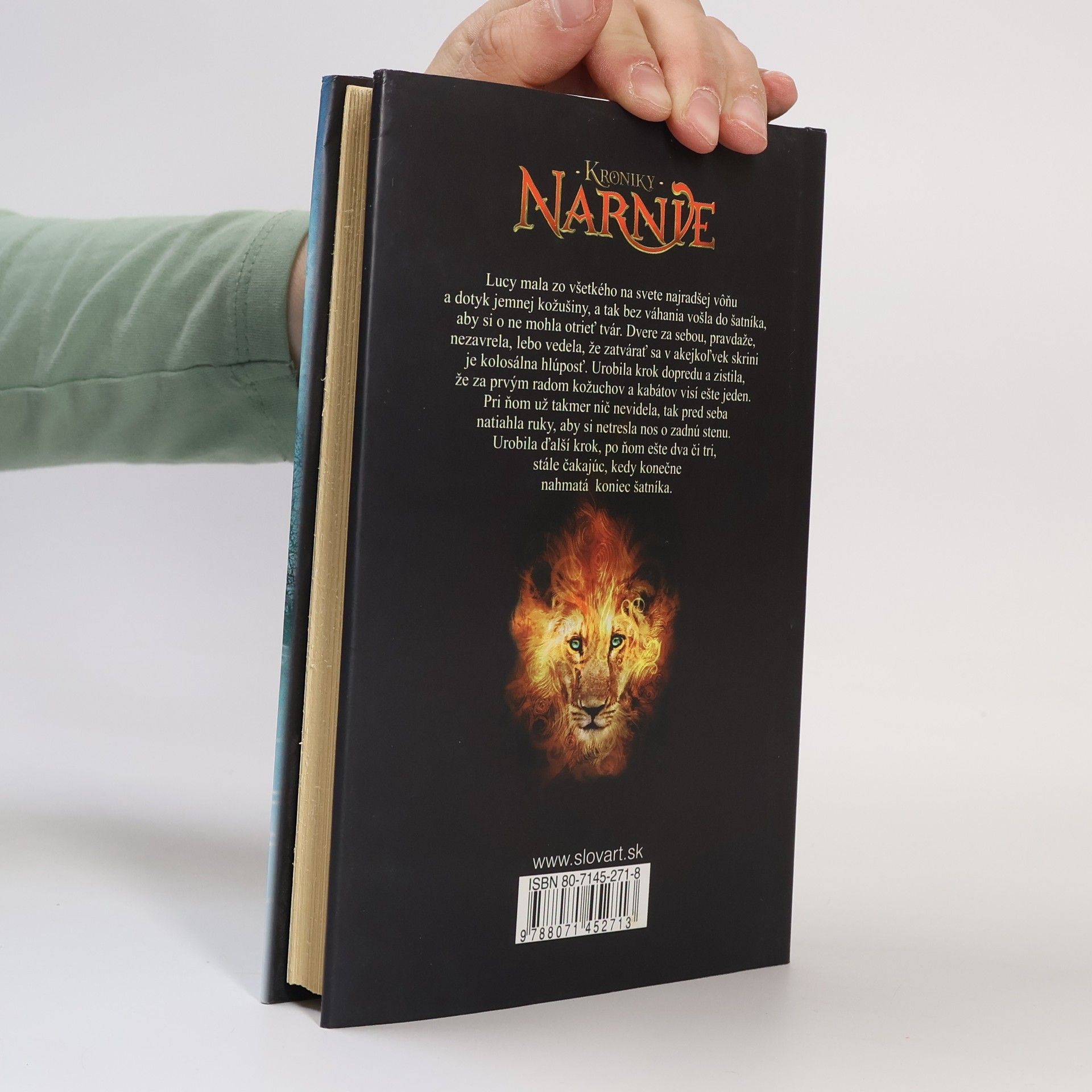 Kroniky Narnie si získali srdcia miliónov čitateľov v celom „našom“ svete. V našom preto, lebo Narnia je iným, ďalším svetom, ktorý sa podarilo objaviť deťom. Je svetom plným čarodejníkov, víl a škriatkov, hovoriacich zvierat, dobra a zla, ale predovšetkým je svetom tisícov napínavých a dobrodružných príbehov. Prvý je vyrozprávaný v knihe Čarodejníkov synovec. Prečítajte si druhý… V Európe zúri vojna a deti posielajú rodičia z Londýna na vidiek, aby ich uchránili pred hrôzami bombardovania. Štvorica súrodencov sa takto dostane do vidieckeho sídla nemenovaného profesora, kde pri hre objavia skriňu na šaty, cez ktorú sa dá dostať do Narnie. Tú medzičasom ovládla zlá Jádis, ktorá má teraz meno Biela čarodejnica, lebo svoju krajinu zakliala tak, aby v nej bola navždy zima a nikdy Vianoce. Podľa starej veštby sa jej vláda má skončiť až vtedy, keď do trónov na hrade Cair Paravel zasadnú štyria ľudia. Zatiaľ však kruto vládne a mení všetkých, čo sa jej znepáčia, na kamenné sochy. Zachrániť ich môže iba Aslanov dych.