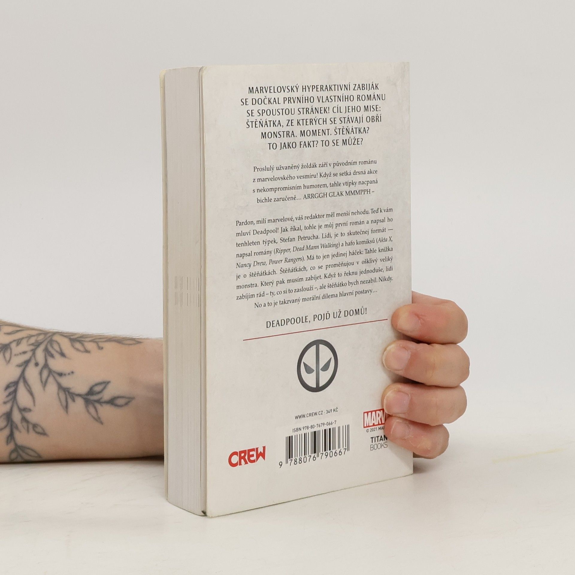 Marvelovský hyperaktivní zabiják se dočkal prvního vlastního románu se spoustou stránek! Cíl jeho mise: štěňátka, ze kterých se stávají obří monstra. Moment. Štěňátka? To jako fakt? To se může? Proslulý užvaněný žoldák září v původním románu z marvelovského vesmíru! Když se setká drsná akce s nekompromisním humorem, tahle vtípky nacpaná bichle zaručeně… ARRGGH GLAK MMMPPH- Pardon, milí marvelové, váš redaktor měl menší nehodu. Teď k vám mluví Deadpool! Jak říkal, tohle je můj první román, a napsal ho tenhleten týpek, Stefan Petrucha. Lidi, je to skutečnej formát — napsal romány (Ripper, Dead Mann Walking) a hafo komiksů (Akta X, Nancy Drew, Power Rangers). Má to jen jedinej háček: Tahle knížka je o štěňátkách. Štěňátkách, co se proměňujou v ošklivý veliký monstra. Který pak musím zabíjet. Když to řeknu jednoduše, lidi zabíjím rád – ty, co si to zaslouží – ale štěňátko bych nezabil. Nikdy. No a to je takzvaný morální dilema hlavní postavy… DEADPOOLE, POJĎ UŽ DOMŮ!