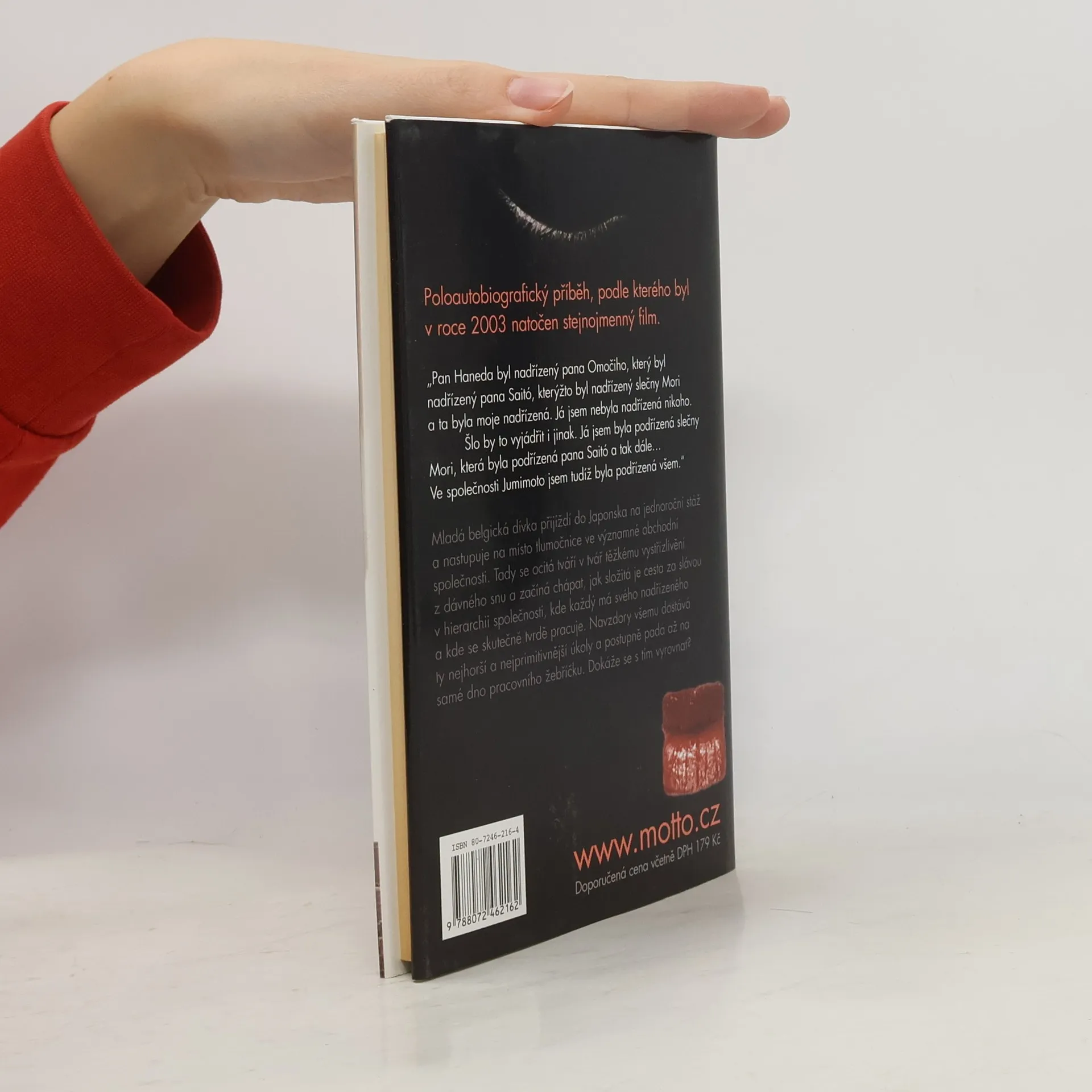 Mladá belgická dívka přijíždí do Japonska na jednoroční stáž a nastupuje na místo tlumočnice ve významné obchodní společnosti. Tady se ocitá tváří v tvář těžkému vystřízlivění z dávného snu a začíná chápat, jak složitá je cesta za slávou v hierarchii společnosti, kde každý má svého nadřízeného a kde se skutečně tvrdě pracuje. Navzdory všemu dostává ty nejhorší a nejprimitivnější úkoly a postupně padá až na samé dno pracovního žebříčku. Dokáže se s tím vyrovnat?