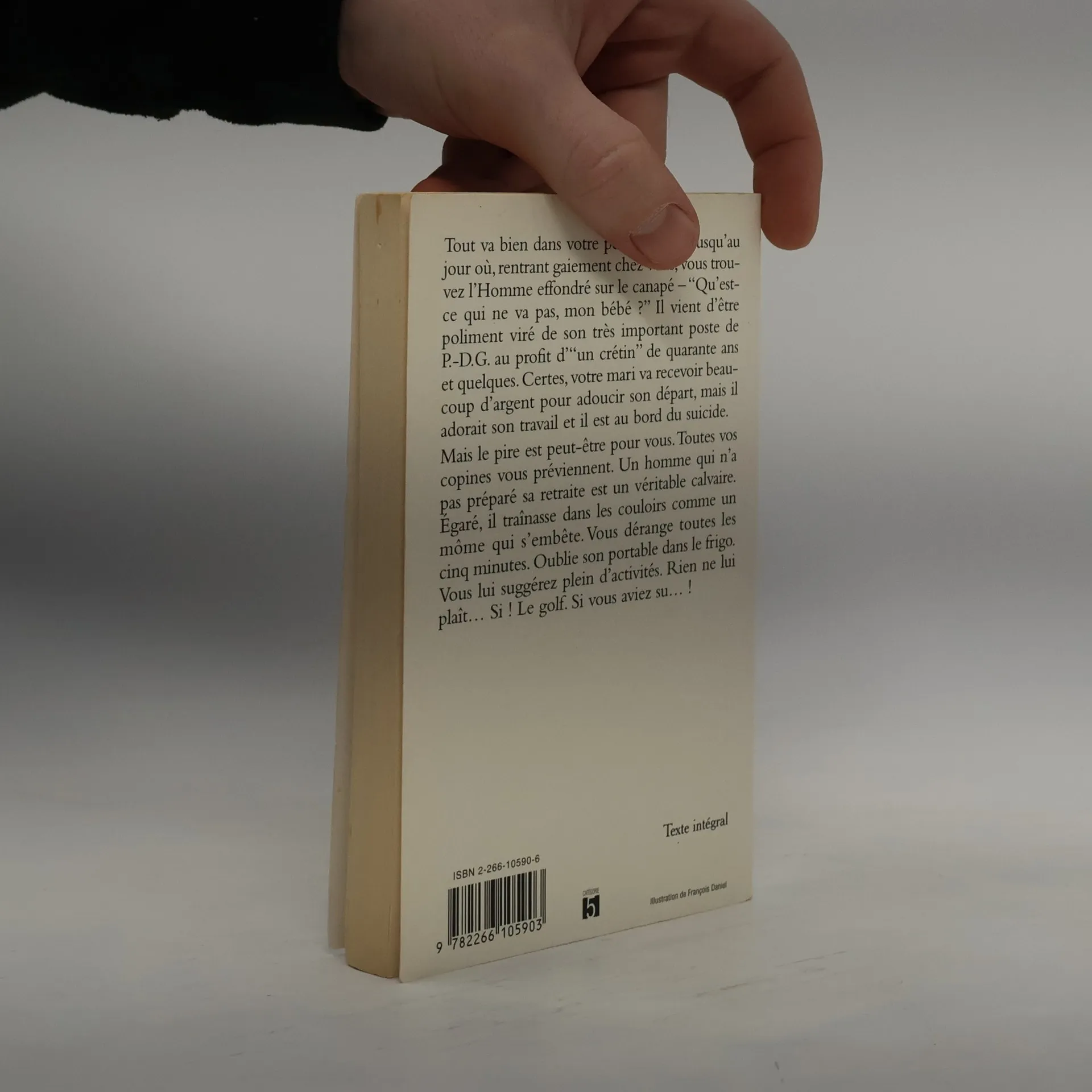 Tout va bien dans votre petite famille. Jusqu'au jour où, rentrant gaiement chez vous, vous trouvez l'Homme effondré sur le canapé - " Qu'est-ce qui ne va pas, mon bébé ? " Il vient d'être poliment viré de son très important poste de P-D.G. au profit d' " un crétin " de quarante ans et quelques. Certes, votre mari va recevoir beaucoup d'argent pour adoucir son départ, mais il adorait son travail et il est au bord du suicide. Mais le pire est peut-être pour vous. Toutes vos copines vous préviennent. Un homme qui n'a pas préparé sa retraite est un véritable calvaire. Egaré, il traînasse dans les couloirs comme un môme qui s'embête. Vous dérange toutes les cinq minutes. Oublie son portable dans le frigo. Vous lui suggérez plein d'activités. Rien ne lui plaît... Si ! Le golf. Si vous aviez su... !