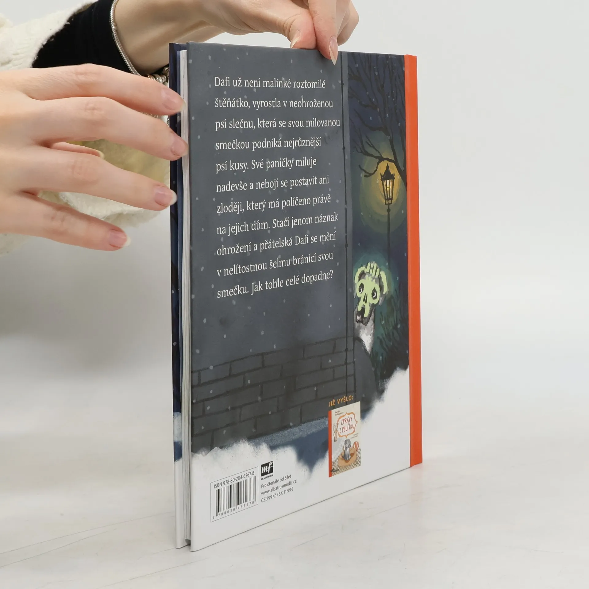 Volné pokračování oblíbené knížky Zprávy z pelíšku Dafi už není malinké roztomilé štěňátko, vyrostla v neohroženou psí slečnu, která se svou milovanou smečkou podniká nejrůznější psí kusy. Své paničky miluje nadevše a nebojí se postavit ani zloději, který má políčeno právě na jejich dům. Stačí jenom náznak ohrožení a přátelská Dafi se mění v nelítostnou šelmu bránící svou smečku. Jak tohle celé dopadne?