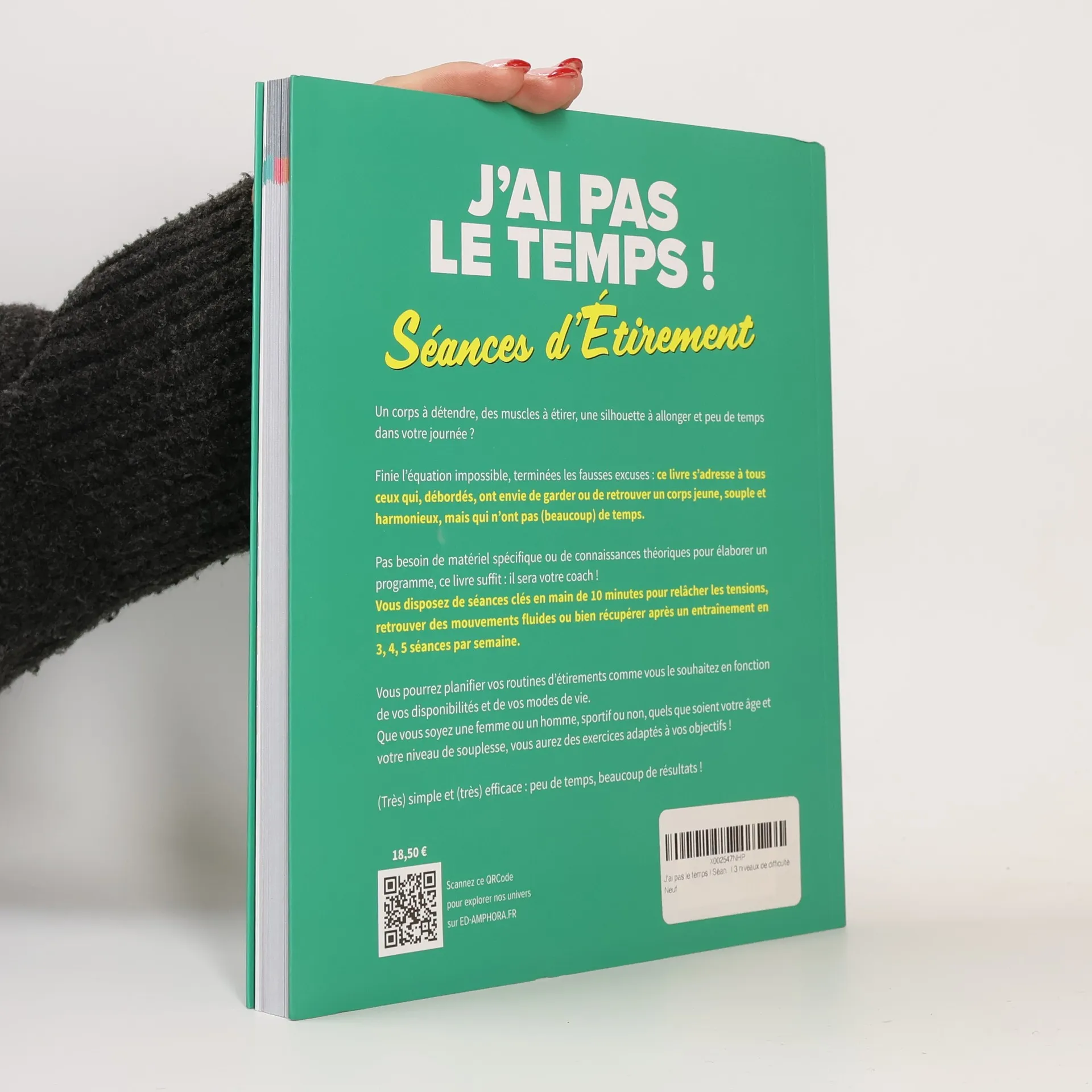 Un corps à détendre, des muscles à étirer, une silhouette à allonger et peu de temps dans votre journée ? Finie l'équation impossible, terminées les fausses excuses : ce livre s'adresse à tous ceux qui, débordés, ont envie de garder ou de retrouver un corps jeune, souple et harmonieux, mais qui n'ont pas (beaucoup) de temps. Pas besoin de matériel spécifique ou de connaissances théoriques pour élaborer un programme, ce livre suffit : il sera votre coach ! Vous disposez de séances clés en main de 10 minutes pour relâcher les tensions, retrouver des mouvements fluides ou bien récupérer après un entraînement en 3, 4, 5 séances par semaine. Vous pourrez planifier vos routines d'étirements comme vous le souhaitez en fonction de vos disponibilités et de vos modes de vie. Que vous soyez une femme ou un homme, sportif ou non, quels que soient votre âge et votre niveau de souplesse, vous aurez des exercices adaptés à vos objectifs ! (Très) simple et (très) efficace : peu de temps, beaucoup de résultats !