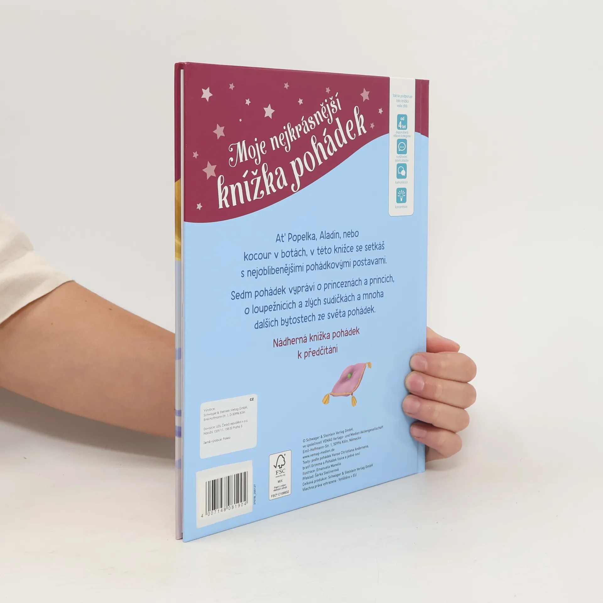 Výběr sedmi nejznámějších pohádek - Popelka, Kocour v botách, Šípková Růženka, O Malence, Princezna na hrášku, Ali Baba a čtyřicet loupežníku, Aladinova kouzelná lampa.