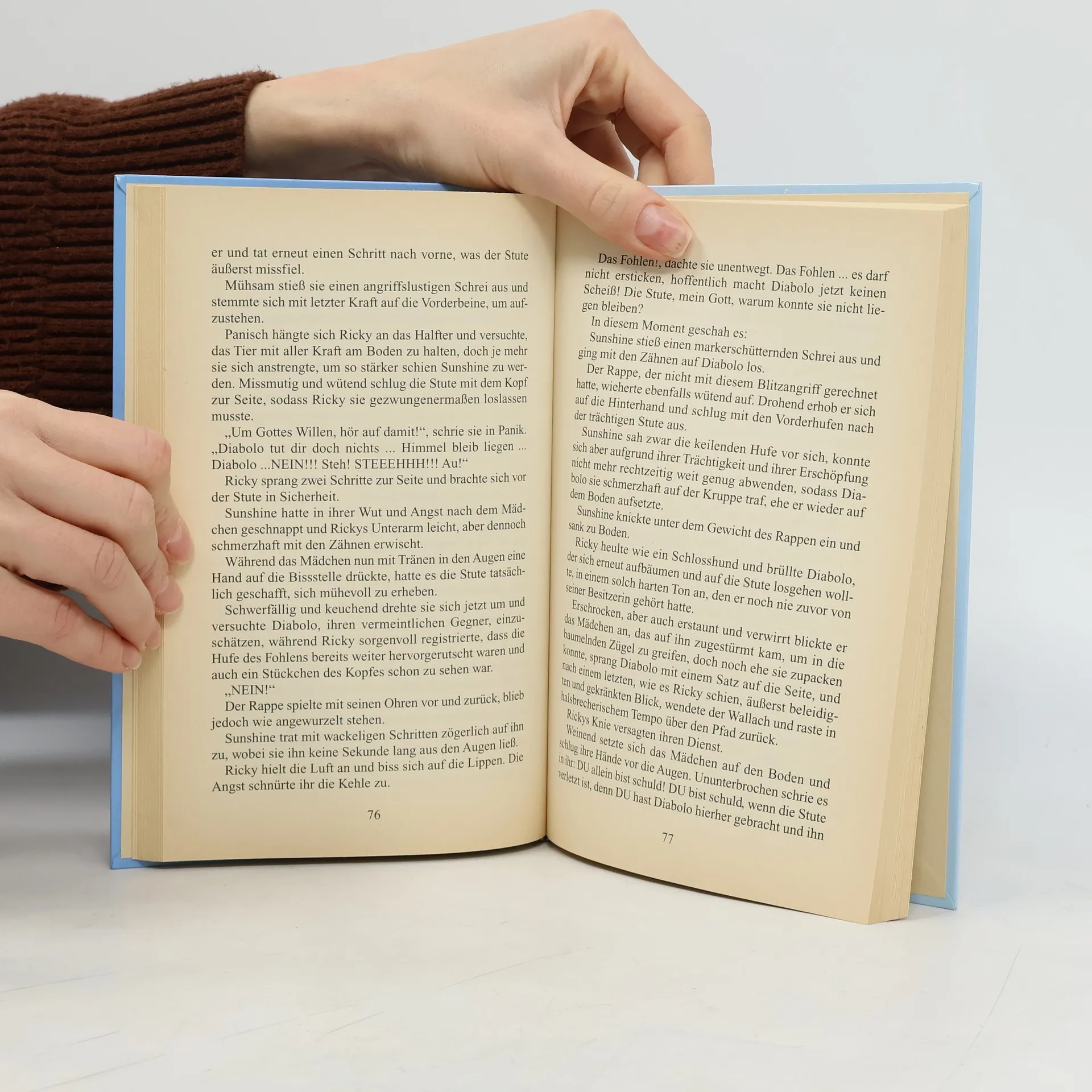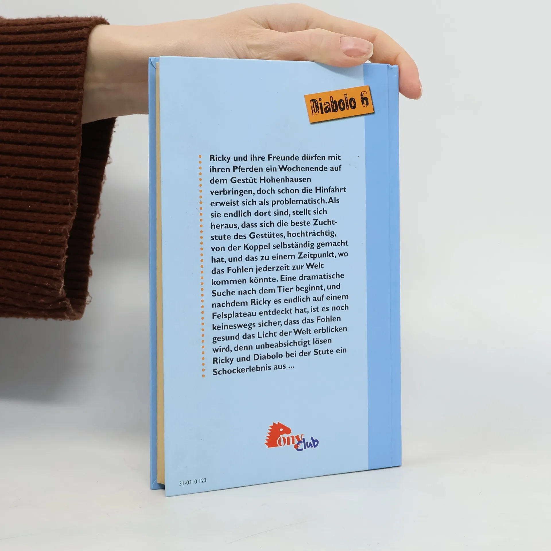 Ricky und ihre Freunde dürfen mit ihren Pferden ein Wochenende auf dem Gestüt Hohenhausen verbringen, doch schon die Hinfahrt erweist sich als problematisch. Als sie endlich dort sind, stellt sich heraus, dass sich die beste Zuchtstute des Gestüts, hochträchtig, von der Koppel selbstständig gemacht hat, und das zu einem Zeitpunkt, wo das Fohlen jederzeit zur Welt kommen könnte. Eine dramatische Suche nach dem Tier beginnt, und nachdem Ricky es endlich auf einem Felsplateau entdeckt hat, ist es noch keineswegs sicher, dass das Fohlen gesund das Licht der Welt erblicken wird, denn unbeabsichtigt lösen Ricky und Diabolo bei der Stute ein Schockerlebnis aus …