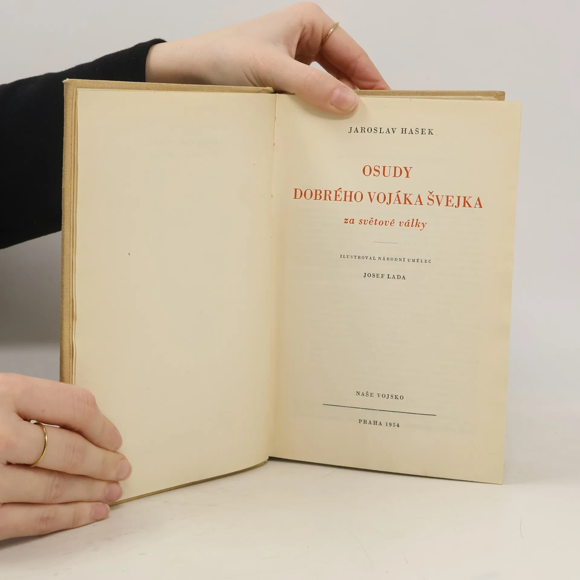Kuriosní vydání Haškova slavného románu z roku 1954 , jen pro příslušníky čs. branné moci. Čtyři díly: V zázemí, Na frontě, Slavný výprask, Pokračování slavného výprasku. Ilustrace Josef Lada. Rozsáhlé vydavatelské vysvětlivky.