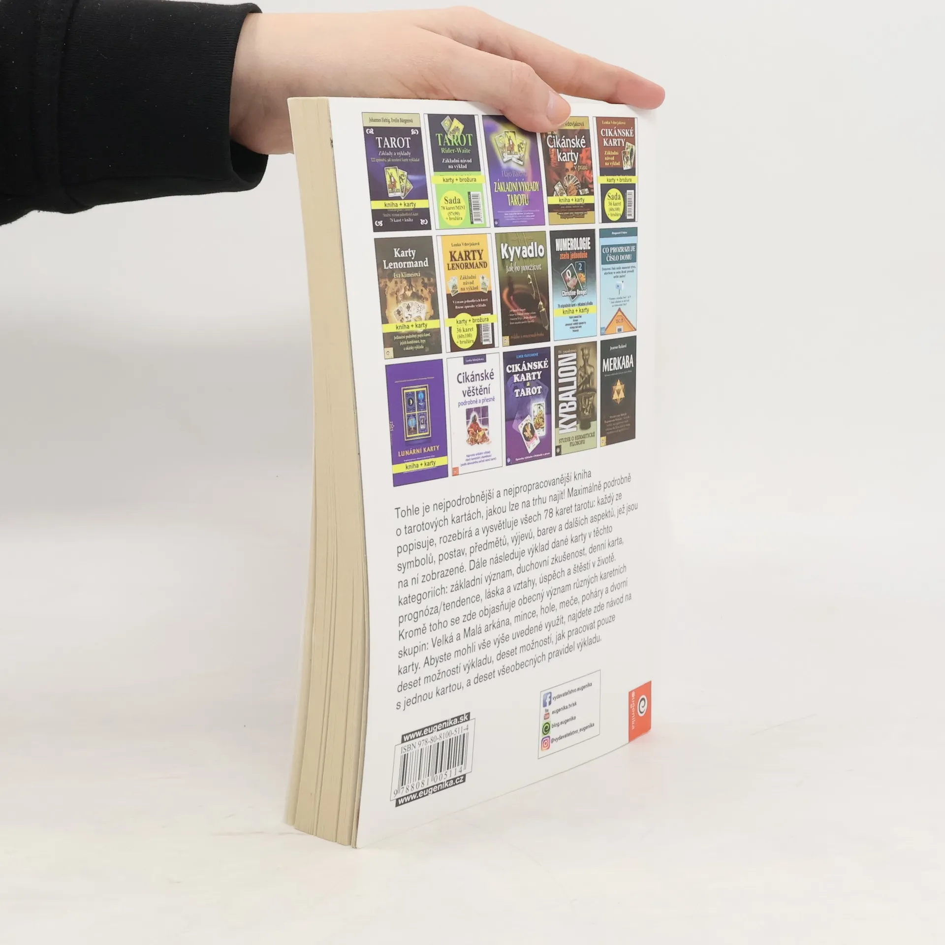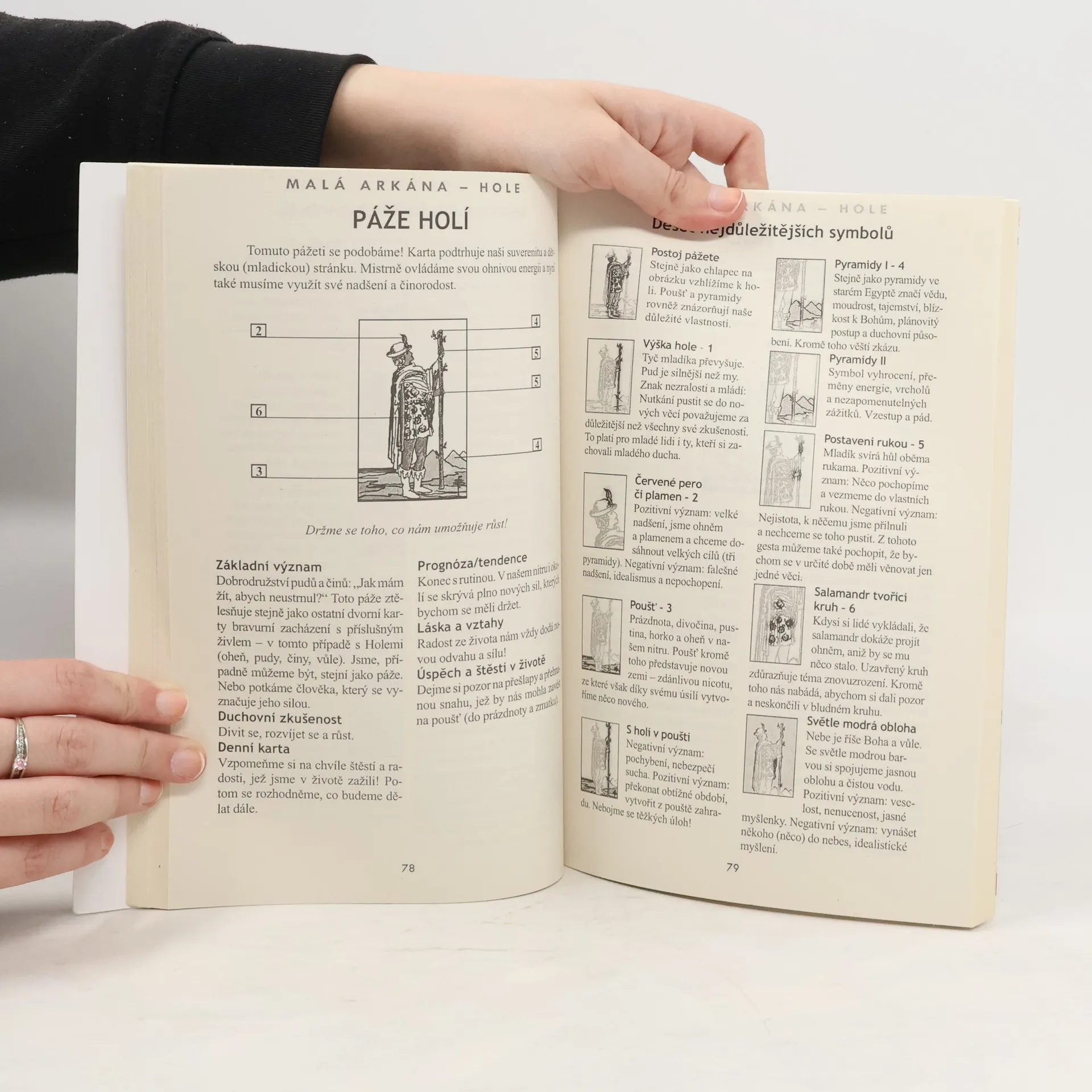 Toto je asi nejpodrobnější kniha o tarotových kartách, jaká se dá najít! Podrobně popisuje, rozebírá a vysvětluje každou jednu ze 78 karet celého Tarotu: všechny symboly, postavy, předměty, výjevy dokonce použité barvy které jsou na ní zobrazeny. Dále následuje výklad dané karty v těchto kategoriích: základní význam, duchovní zkušenost, denní karta, prognóza / tendence, láska a vztahy, úspěch a štěstí v životě. Kromě toho se ty vysvětluje obecný význam různých skupin karet: Velká a Malá arkána, mince, hole, meče, poháry, dvorní karty. Aby se výše uvedené vůbec dalo zužitkovat, najdete zde návod na deset možností výkladu (s různým počtem karet), deset možností, jak si vyložit pouze jednu kartu, a deset obecných pravidel pro výklad. Pokud vás zajímá Tarot, tato kniha vám nesmí chybět!