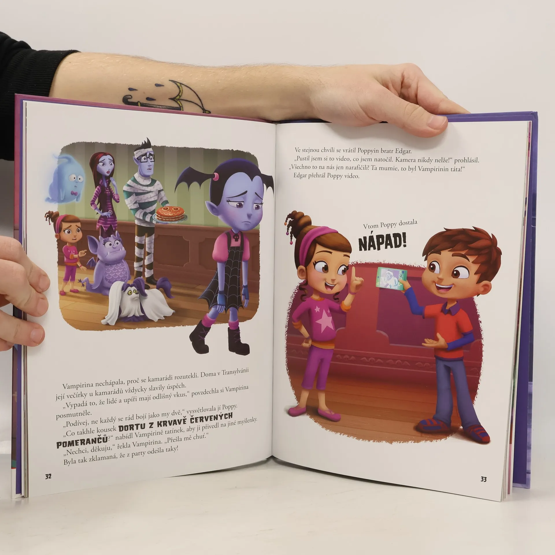 Malá Vampirina je upírka a ve městě je nová. S celou svou upírskou rodinou se právě přistěhovala z Transylvánie! Vampirinina oblíbená barva je ponurá černá, zbožňuje nečekaná leknutí a zvuk nehtů škrábajících po tabuli jí projde uklidňující. Sice není jako ostatní děti v okolí, ale to vůbec nevadí, protože je naprosto neodolatelná! Se svými přáteli po boku nadšeně objevuje všechno, co lidský svět může nabídnout. Kniha obsahuje tři příběhy podle seriálu.