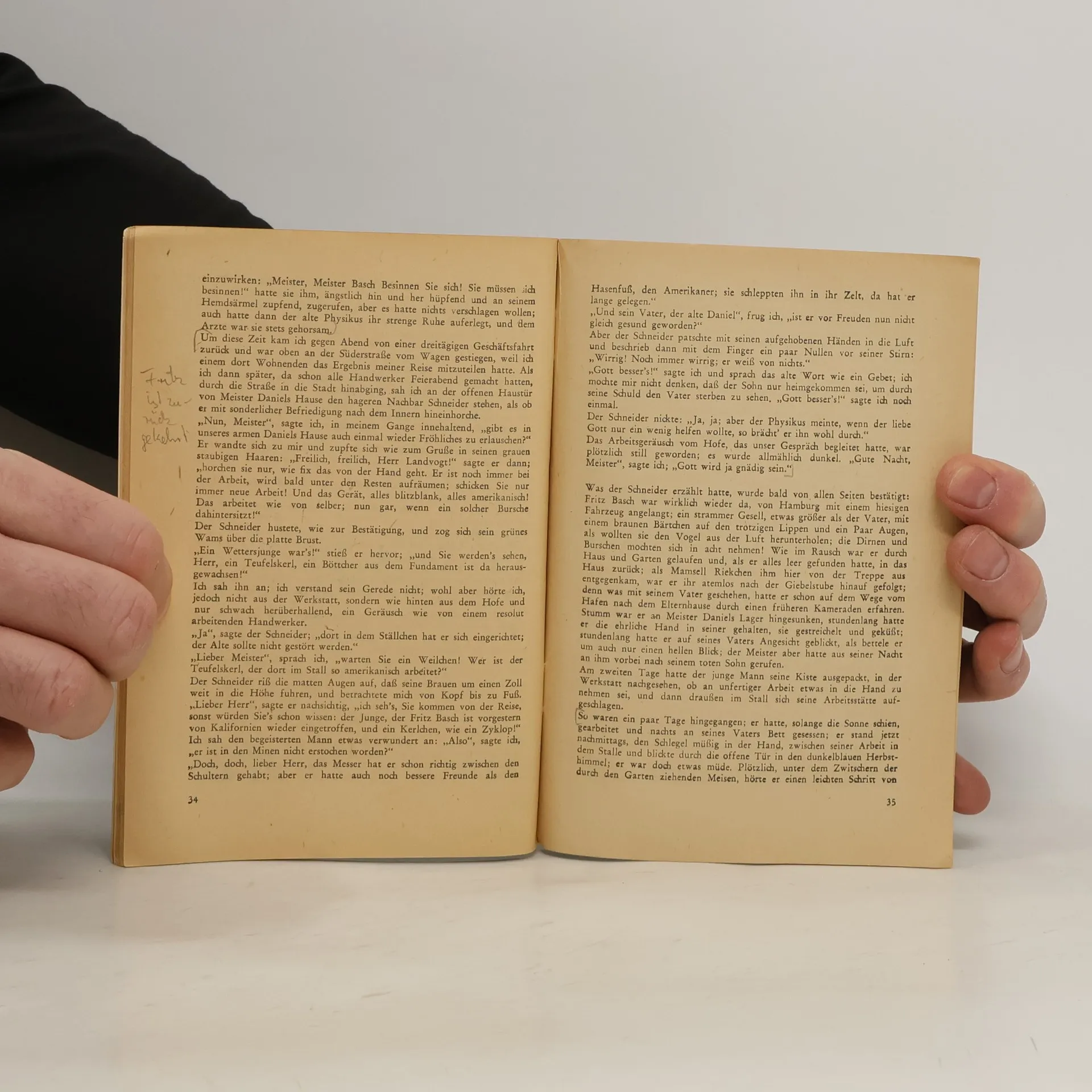 Die Geschichte spielt im frühen 17. Jahrhundert in einer kleinen Stadt, wo ein Haus mit einem eindrucksvollen Sandsteinrelief steht. Dieses Bild zeigt einen Mann in einem Boot, der von den Wellen des Todes erfasst wird, und trägt die Inschrift "Up Land un See". Es wird erzählt, dass ein Steinhauer das Haus errichtete, um seinem verstorbenen Vater zu gedenken, der als Schiffer zwischen den Inseln umkam. Die Erzählung thematisiert Verlust, Erinnerung und die Verbindung zwischen Land und Meer.