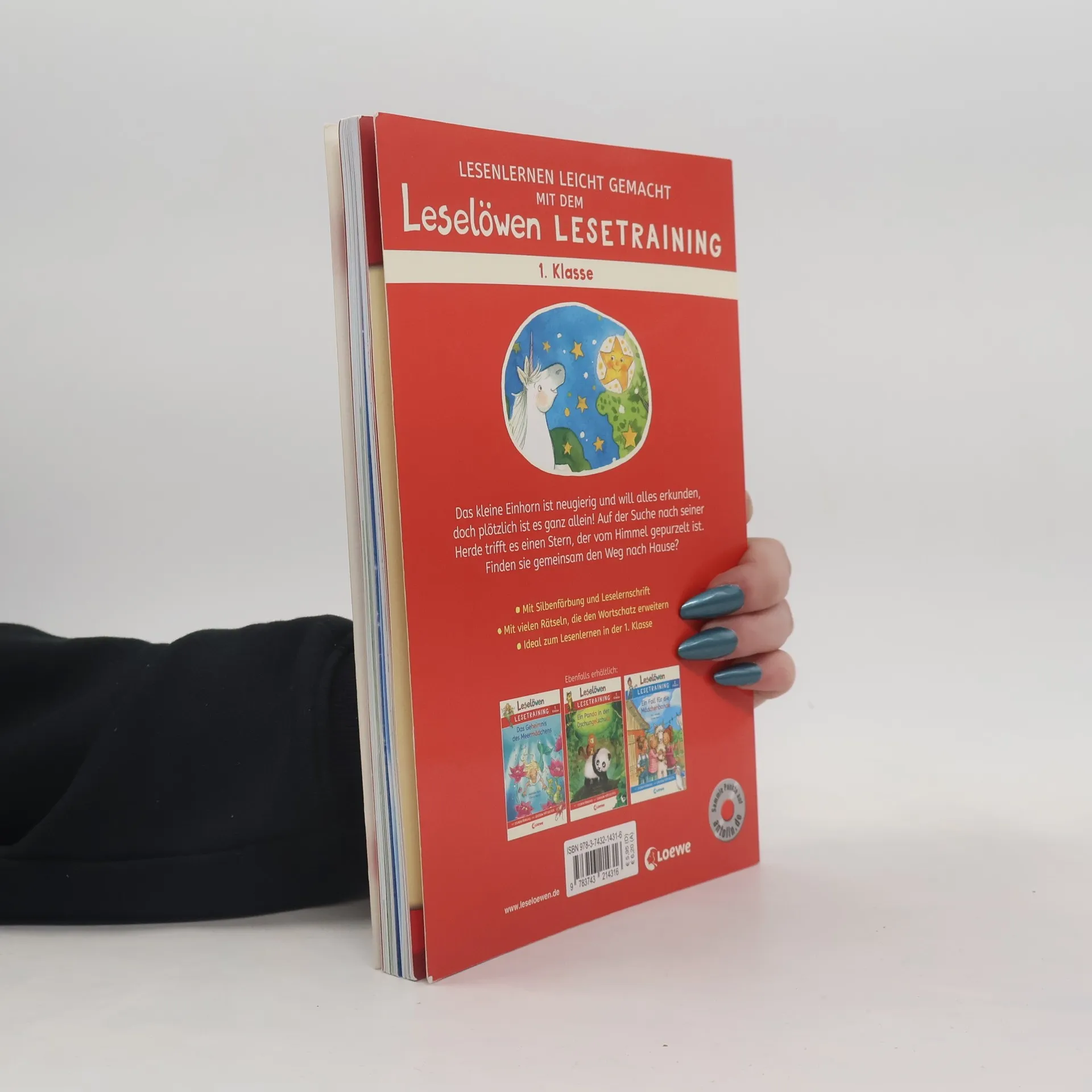 Das Buch "Leselöwen Lesetraining 1. Klasse" erzählt von einem kleinen Einhorn, das auf der Suche nach seiner Herde einen gefallenen Stern trifft. Mit Silbenfärbung und vielen Rätseln fördert es das Lesenlernen für Kinder ab 6 Jahren. Ideal für den Einstieg ins Lesen mit spannenden Geschichten und abwechslungsreichen Übungen.