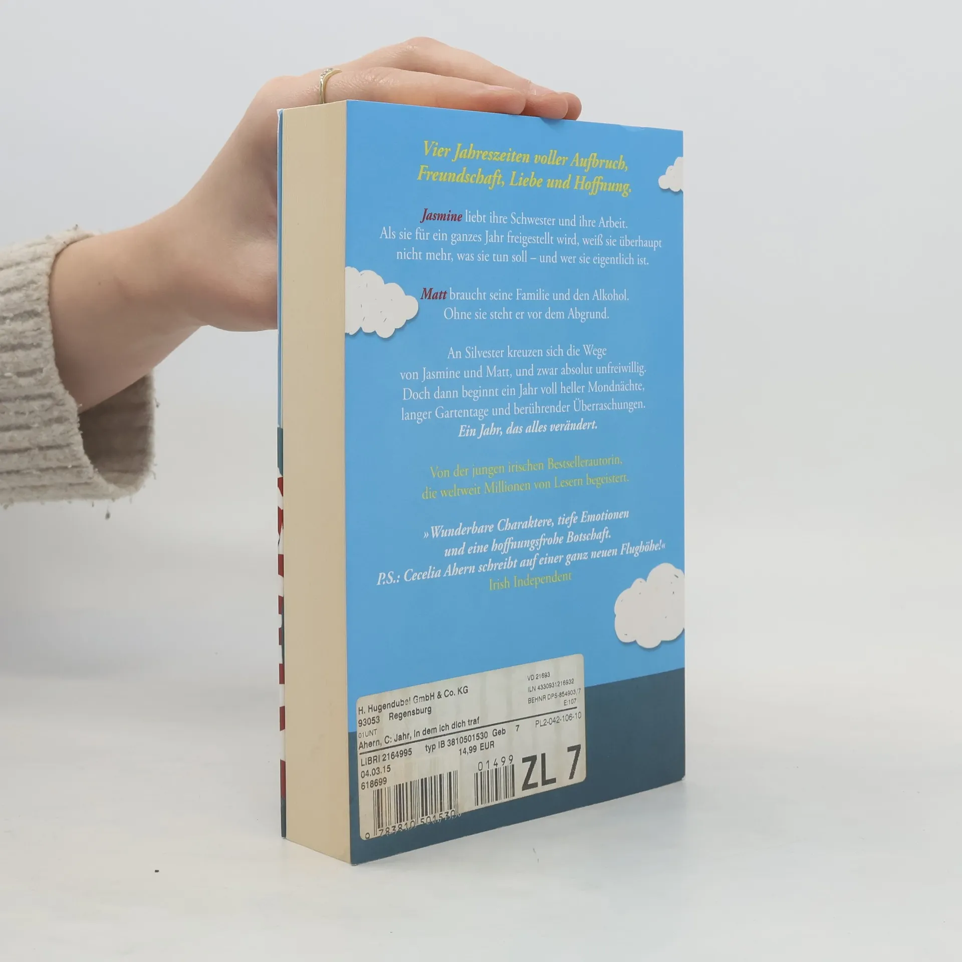 Vier Jahreszeiten voller Aufbruch, Freundschaft, Liebe und Hoffnung: der neue Roman der jungen irischen Bestsellerautorin, die weltweit Millionen von Lesern begeistert. Jasmine liebt ihre Schwester und ihre Arbeit. Als sie für ein ganzes Jahr freigestellt wird, weiß sie überhaupt nicht mehr, was sie tun soll – und wer sie eigentlich ist. Matt braucht seine Familie und den Alkohol. Ohne sie steht er vor dem Abgrund. Jasmine und Matt sind Nachbarn, doch sie haben noch nie miteinander gesprochen. Da Jasmine so viel freie Zeit zu Hause hat, beginnt sie, Matt zu beobachten. Sie macht sich ihre Gedanken über ihn und fängt in ihrem Kopf Gespräche mit ihm an. Nur in echt will sie mit diesem Kerl nichts zu tun haben – dafür hat sie ihre eigenen, guten Gründe. Doch dann beginnt ein Jahr voll heller Mondnächte, langer Gartentage und berührender Überraschungen – ein Jahr, das alles verändert. Eine Geschichte so humorvoll, originell und einfühlsam, wie nur Cecelia Ahern sie schreibt.