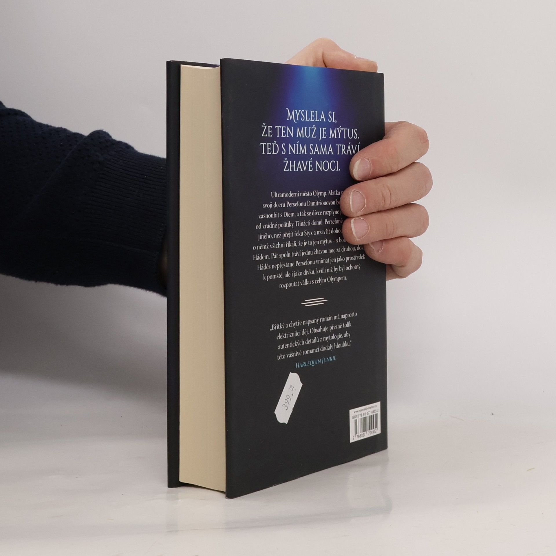 Všichni říkali, že je ten muž mýtus, ale sotva jsem přešla řeku Styx, jeho temné kouzlo mě uhranulo… a byl prostě můj. Miláček společnosti, Persefona Dimitriouová, chce uprchnout z ultramoderního města Olymp a začít znovu daleko od zrádné politiky Třinácti domů. Ale celý sen se vypaří v okamžiku, kdy ji matka bez varování nechá zasnoubit s Diem, nebezpečným vládcem temného města s nablýskanou fasádou. Persefoně nezbývá nic jiného, než prchnout do zakázaného dolního města a uzavřít ďáblovu dohodu s mužem, kterého považovala za legendu… s mužem, který ji dovede do světa, o jehož existenci neměla ani zdání. Hádés strávil celý svůj život ve stínech a vůbec netouží vystoupit na světlo. Když však zjistí, že mu Persefona může nabídnout střípek pomsty, po níž celá léta prahne, pomůže jí – za jistou cenu. Ale každá bezdechá noc, kterou stráví propletený s Persefonou, v něm probouzí tak silnou touhu, že je ochotný rozpoutat válku s celým Olympem, jen aby si ji udržel… Moderní převyprávění mýtu o Hádovi a Persefoně, které je stejně tak hříšné, jako sladké.