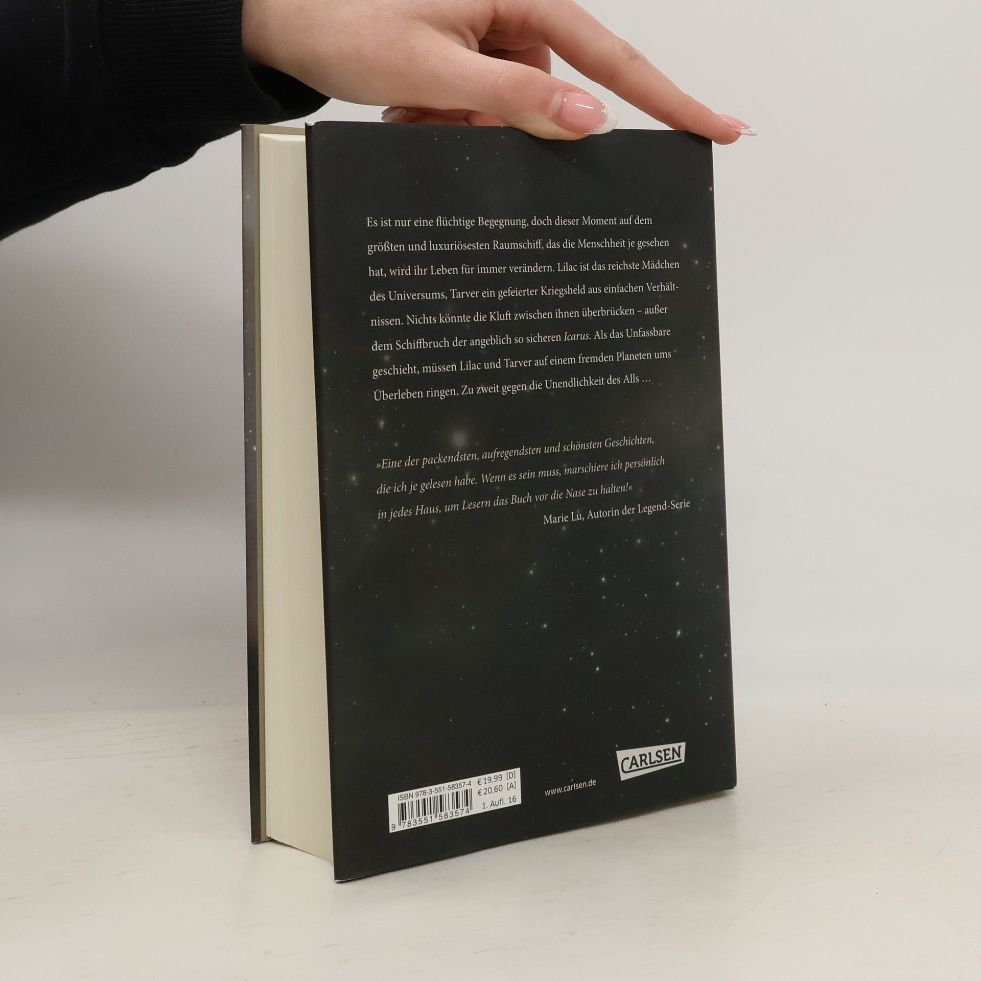 Es ist nur eine flüchtige Begegnung, doch dieser Moment auf dem größten und luxuriösesten Raumschiff, das die Menschheit je gesehen hat, wird ihr Leben für immer verändern. Lilac ist das reichste Mädchen des Universums, Tarver ein gefeierter Kriegsheld aus einfachen Verhältnissen. Nichts könnte die Kluft zwischen ihnen überbrücken – außer dem Schiffbruch der angeblich so sicheren Icarus. Als das Unfassbare geschieht, müssen Lilac und Tarver auf einem fremden Planeten ums Überleben ringen. Zu zweit gegen die Unendlichkeit des Alls ... »Eine der packendsten, aufregendsten und schönsten Geschichten, die ich je gelesen habe. Wenn es sein muss, marschiere ich persönlich in jedes Haus, um Lesern das Buch vor die Nase zu halten!« (Marie Lu) Alle Bände der Serie »These Broken Stars«: These Broken Stars − Lilac und TarverThese Broken Stars − Jubilee und FlynnThese Broken Stars − Sofia und Gideon Die Serie ist abgeschlossen.