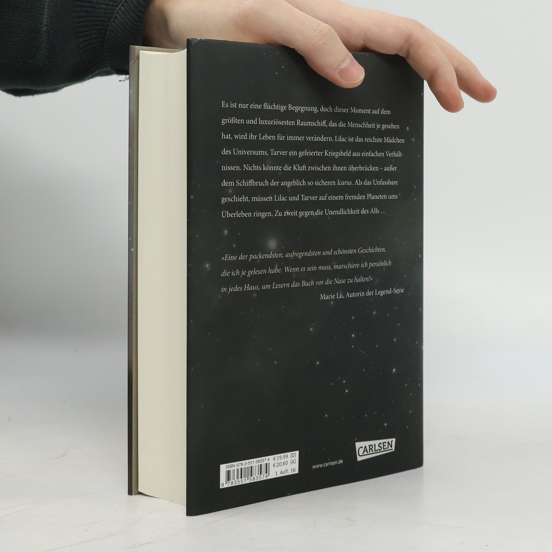 Es ist nur eine flüchtige Begegnung, doch dieser Moment auf dem größten und luxuriösesten Raumschiff, das die Menschheit je gesehen hat, wird ihr Leben für immer verändern. Lilac ist das reichste Mädchen des Universums, Tarver ein gefeierter Kriegsheld aus einfachen Verhältnissen. Nichts könnte die Kluft zwischen ihnen überbrücken – außer dem Schiffbruch der angeblich so sicheren Icarus. Als das Unfassbare geschieht, müssen Lilac und Tarver auf einem fremden Planeten ums Überleben ringen. Zu zweit gegen die Unendlichkeit des Alls ... »Eine der packendsten, aufregendsten und schönsten Geschichten, die ich je gelesen habe. Wenn es sein muss, marschiere ich persönlich in jedes Haus, um Lesern das Buch vor die Nase zu halten!« (Marie Lu) Alle Bände der Serie »These Broken Stars«: These Broken Stars − Lilac und TarverThese Broken Stars − Jubilee und FlynnThese Broken Stars − Sofia und Gideon Die Serie ist abgeschlossen.