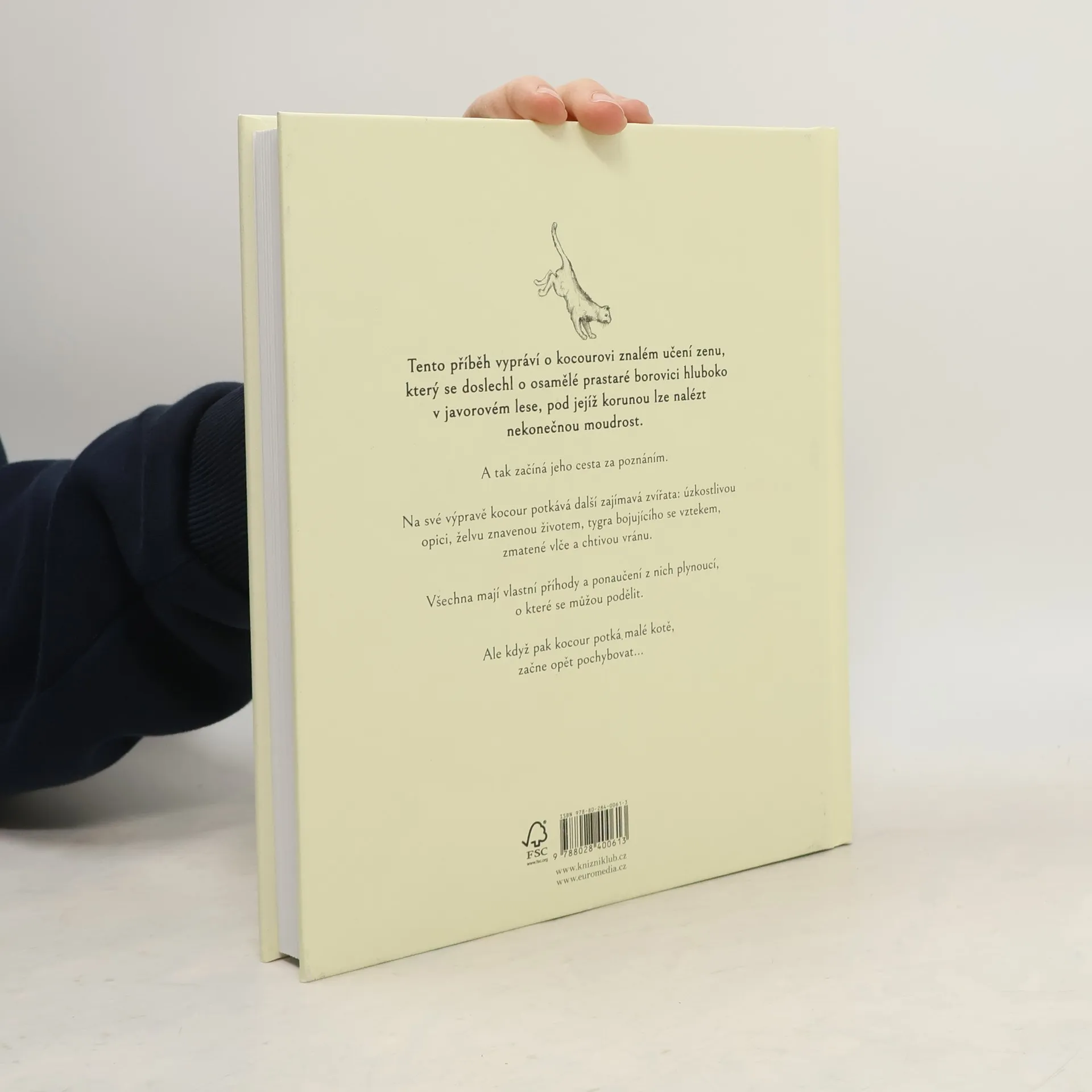 Opravdu je vždy to, oč usilujeme, také právě to, co potřebujeme? Najde kocour, znalec filozofie zenu, bájnou borovici, o níž se proslýchá, že mezi jejími větvemi lze dosáhnout nekonečného poznání, harmonie a vnitřního naplnění? Vydejte se spolu s ním na inspirativní cestu v této novince od autora celosvětově úspěšné knihy Panda a dráček.