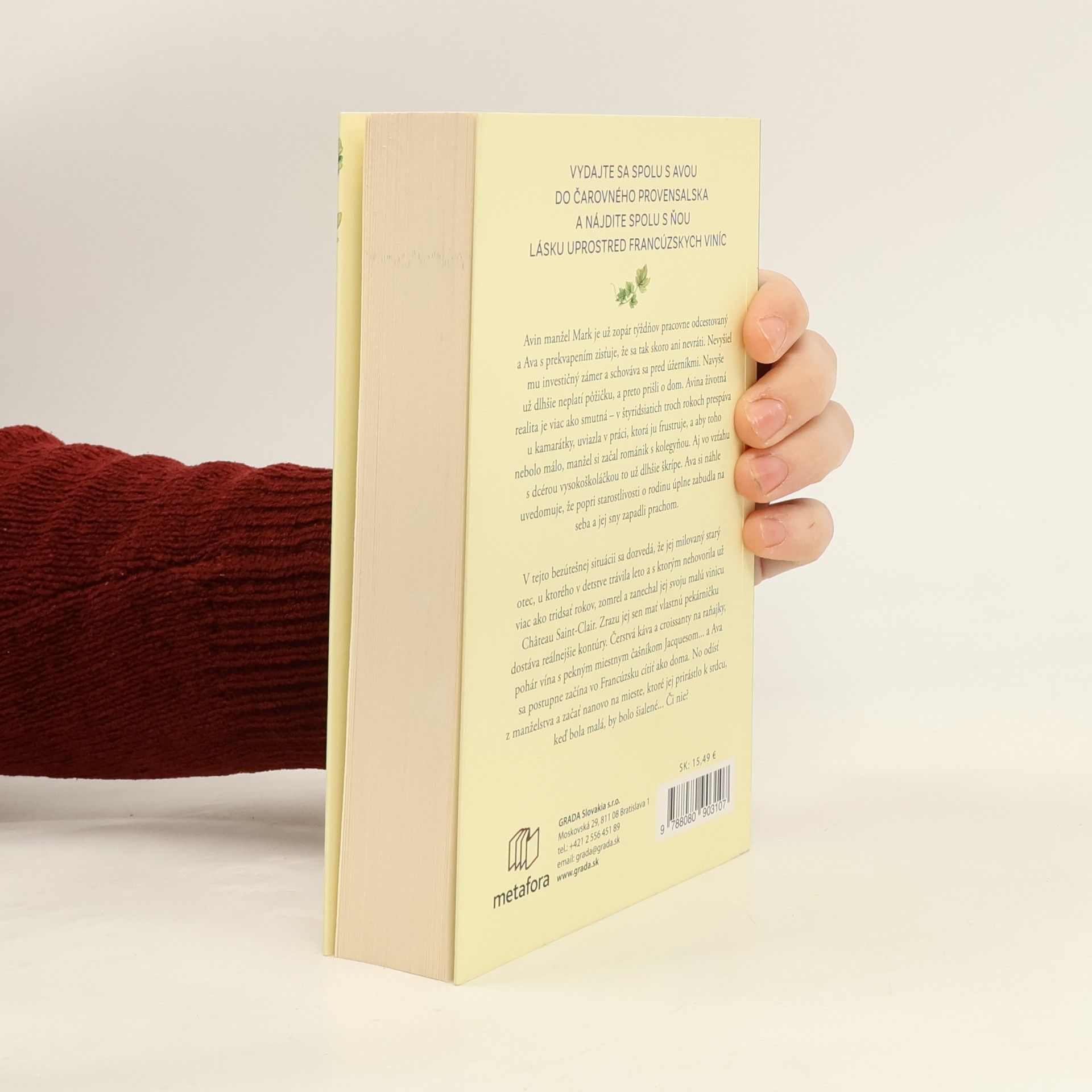 Avin manžel Mark je už zopár týždňov pracovne odcestovaný a Ava s prekvapením zisťuje, že sa tak skoro ani nevráti. Nevyšiel mu investičný zámer a schováva sa pred úžerníkmi. Navyše už dlhšie neplatí pôžičku, a preto prišli o dom. Avina životná realita je viac ako smutná – v štyridsiatich troch rokoch prespáva u kamarátky, uviazla v práci, ktorá ju frustruje, a aby toho nebolo málo, manžel si začal románik s kolegyňou. Aj vo vzťahu s dcérou vysokoškoláčkou to už dlhšie škrípe. Ava si náhle uvedomuje, že popri starostlivosti o rodinu úplne zabudla na seba a jej sny zapadli prachom. V tejto bezútešnej situácii sa dozvedá, že jej milovaný starý otec, u ktorého v detstve trávila leto a s ktorým nehovorila už viac ako tridsať rokov, zomrel a zanechal jej svoju malú vinicu Château Saint-Clair. Zrazu jej sen mať vlastnú pekárničku dostáva reálnejšie kontúry. Čerstvá káva a croissanty na raňajky, pohár vína s pekným miestnym čašníkom Jacquesom... a Ava sa postupne začína vo Francúzsku cítiť ako doma. No odísť z manželstva a začať nanovo na mieste, ktoré jej prirástlo k srdcu, keď bola malá, by bolo šialené... Či nie?
