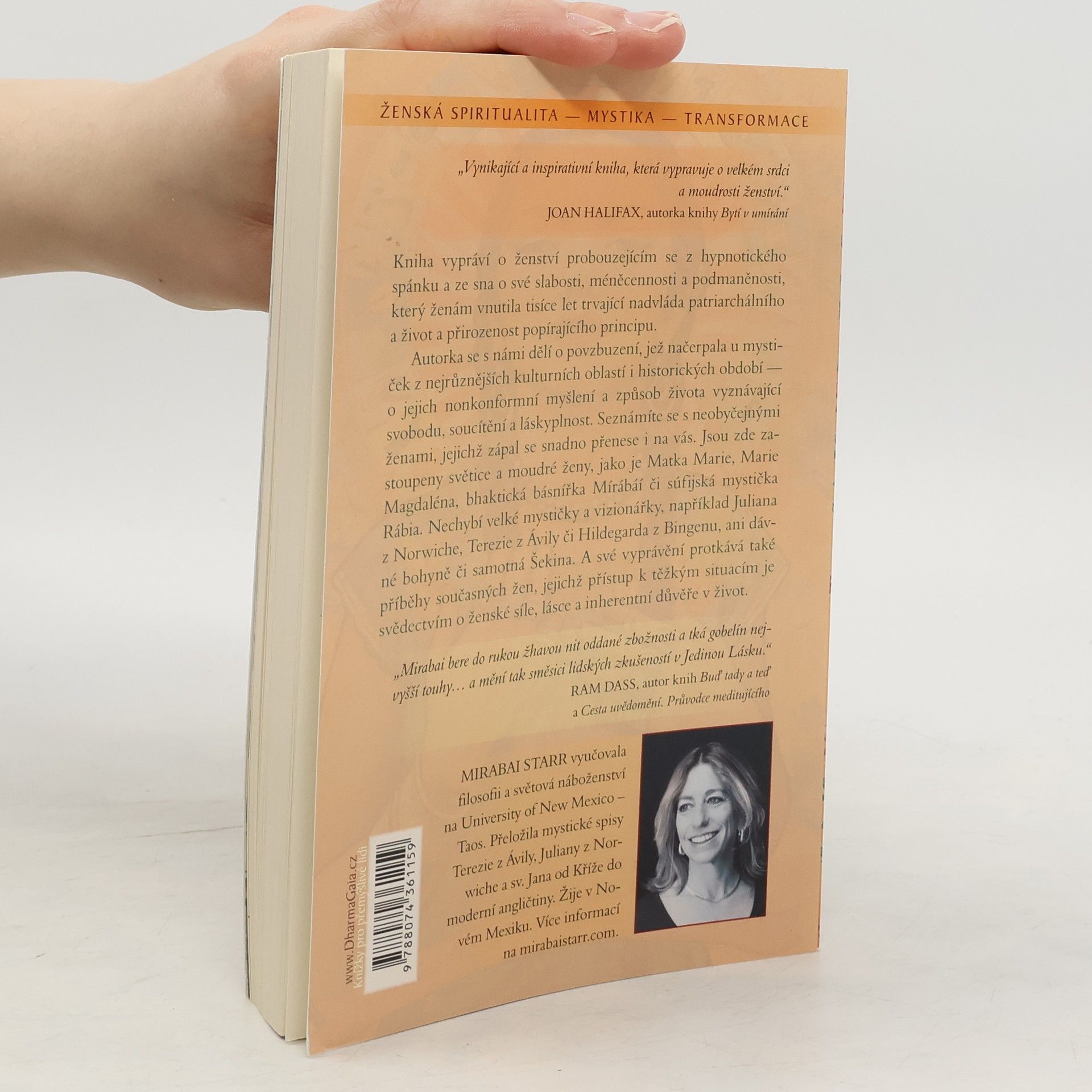 Kniha vypráví o ženství probouzejícím se z hypnotického spánku a ze sna o své slabosti, méněcennosti a podmaněnosti, který ženám vnutila tisíce let trvající nadvláda patriarchálního a život a přirozenost popírajícího principu. Autorka se s námi dělí o povzbuzení, jež načerpala u mystiček z nejrůznějších kulturních oblastí i historických období – o jejich nonkonformní myšlení a způsob života vyznávající svobodu, soucítění a láskyplnost. Seznámíte se s podnětnými ženami, jejichž zápal se snadno přenese i na vás. Jsou zde zastoupeny světice a moudré ženy, jako je Matka Marie, Marie Magdaléna, bhaktická básnířka Mírábáí či súfijská mystička Rábia. Nechybí velké mystičky a vizionářky, například Juliana z Norwiche, Terezie z Ávily či Hildegarda z Bingenu, ani dávné bohyně či samotná Šekina. A své vyprávění protkává také příběhy současných žen, jejichž přístup k těžkým životním situacím je svědectvím o ženské síle, lásce a inherentní důvěře v život.