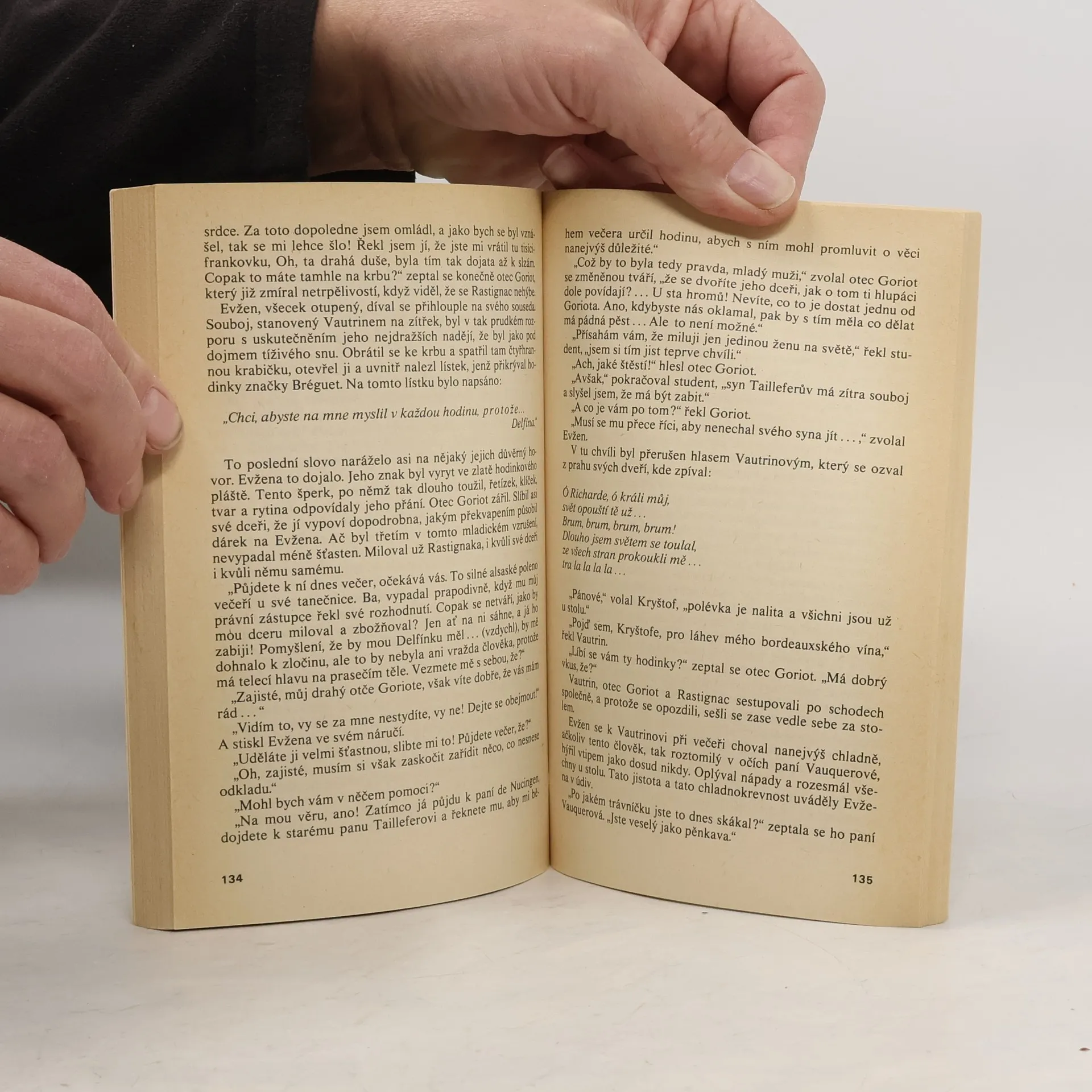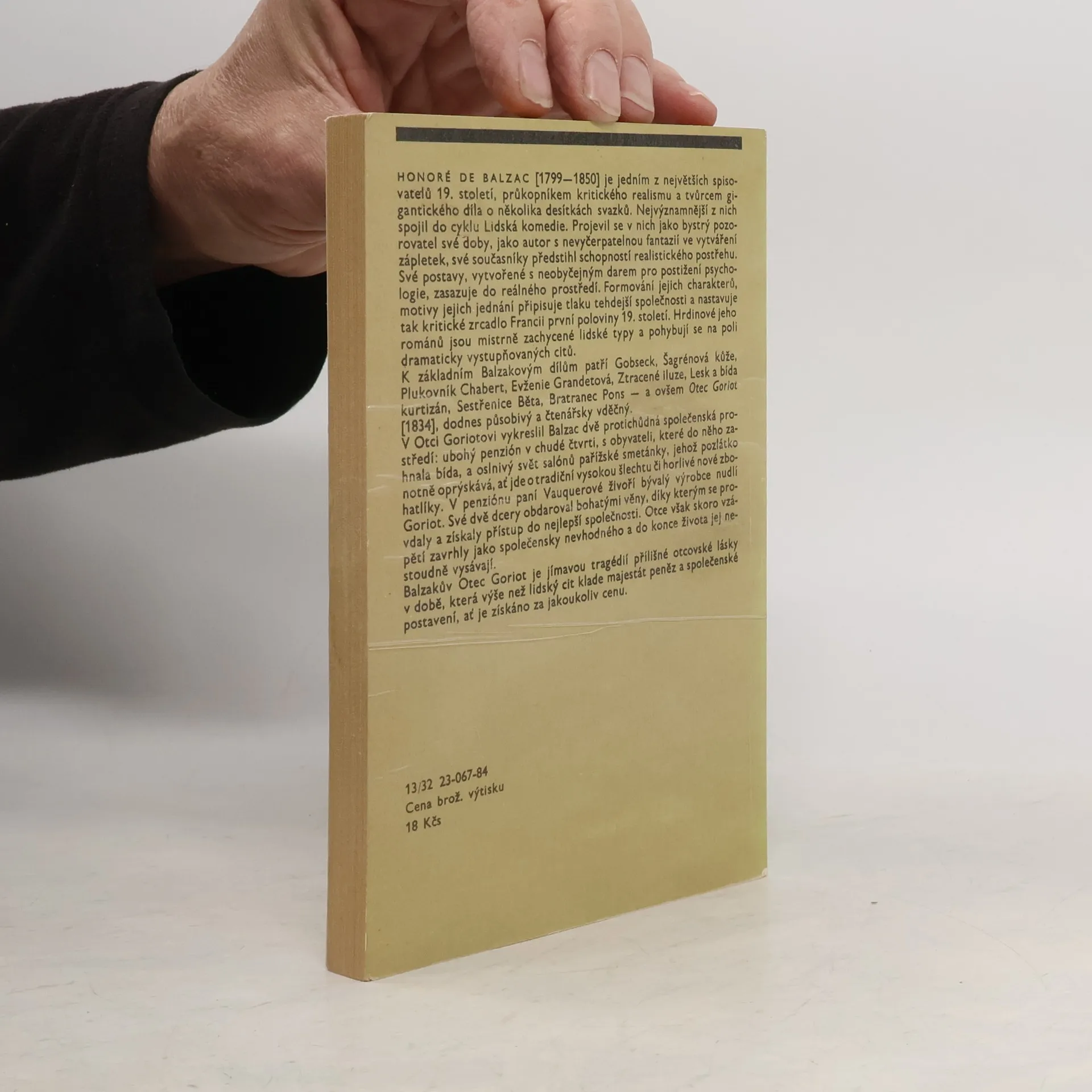 Dnes již legendární román o úpadku společnosti, vypráví životní příběh dvou rozdílných lidí - Evžena de Rastignace, který je svým okolím postupně připravován o iluze a mění se v stále tvrdšího a horšího člověka a otce Goriota, úspěšného obchodníka s nudlemi, který přicházío všechno díky své naivitě a lásce k dcerám. 23-067-84