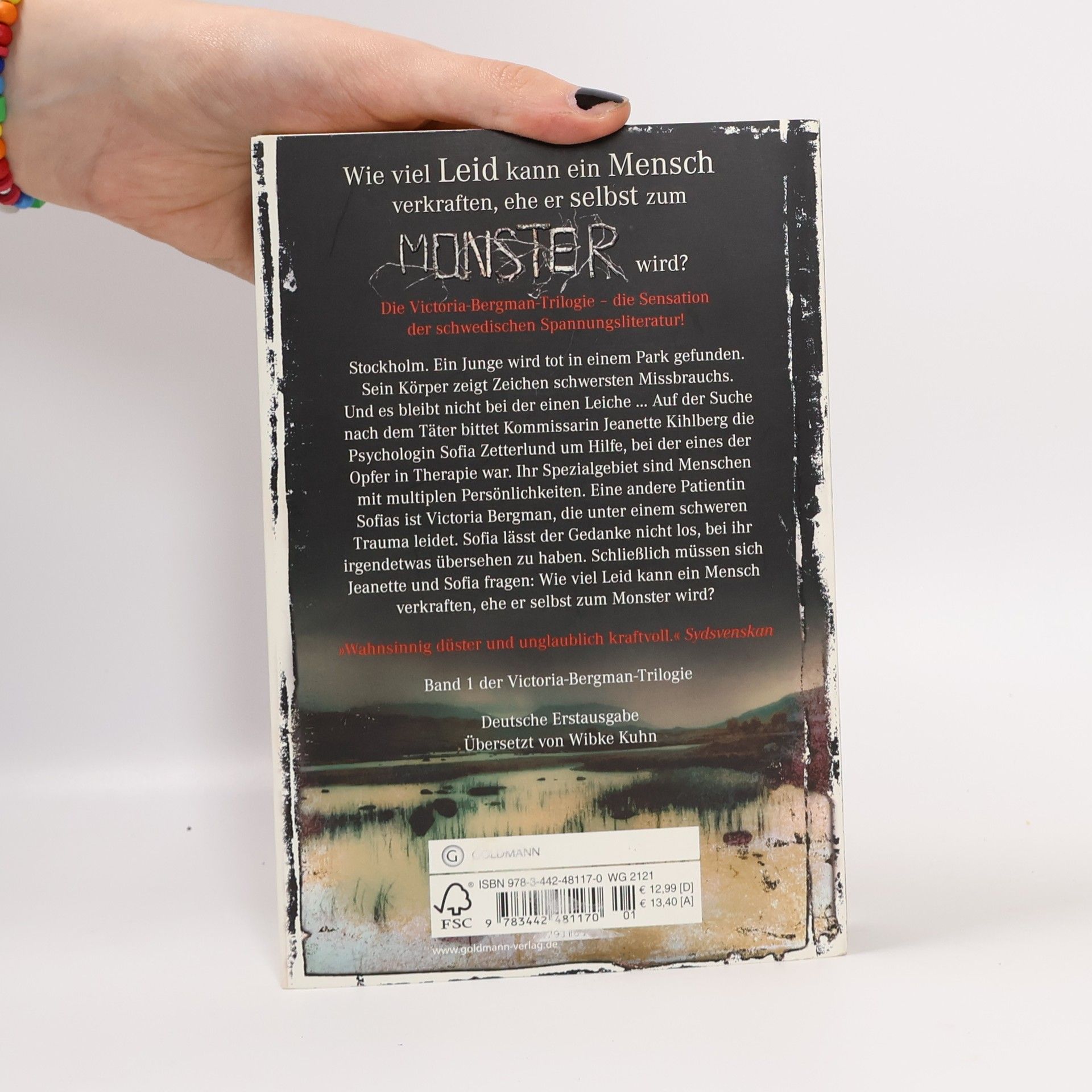 Wie viel Schreckliches kann ein Mensch verkraften, eher er selbst zum Monster wird? Stockholm. Ein Junge wird tot in einem Park gefunden. Sein Körper zeigt Zeichen schwersten Missbrauchs. Und es bleibt nicht bei der einen Leiche ... Auf der Suche nach dem Täter bittet Kommissarin Jeanette Kihlberg die Psychologin Sofia Zetterlund um Hilfe, bei der eines der Opfer in Therapie war. Ihr Spezialgebiet sind Menschen mit multiplen Persönlichkeiten. Eine andere Patientin Sofias ist Victoria Bergman, die unter einem schweren Trauma leidet. Sofia lässt der Gedanke nicht los, bei ihr irgendetwas übersehen zu haben. Schließlich müssen sich Jeanette und Sofia fragen: Wie viel Leid kann ein Mensch verkraften, eher er selbst zum Monster wird? „Krähenmädchen“ (Band 1 der Victoria-Bergman-Trilogie) ist im Juli 2014 erschienen. „Narbenkind“ (Band 2 der Victoria-Bergman-Trilogie) ist im September 2014 erschienen. „Schattenschrei“ (Band 3 der Victoria-Bergman-Trilogie) ist im November 2014 erschienen.