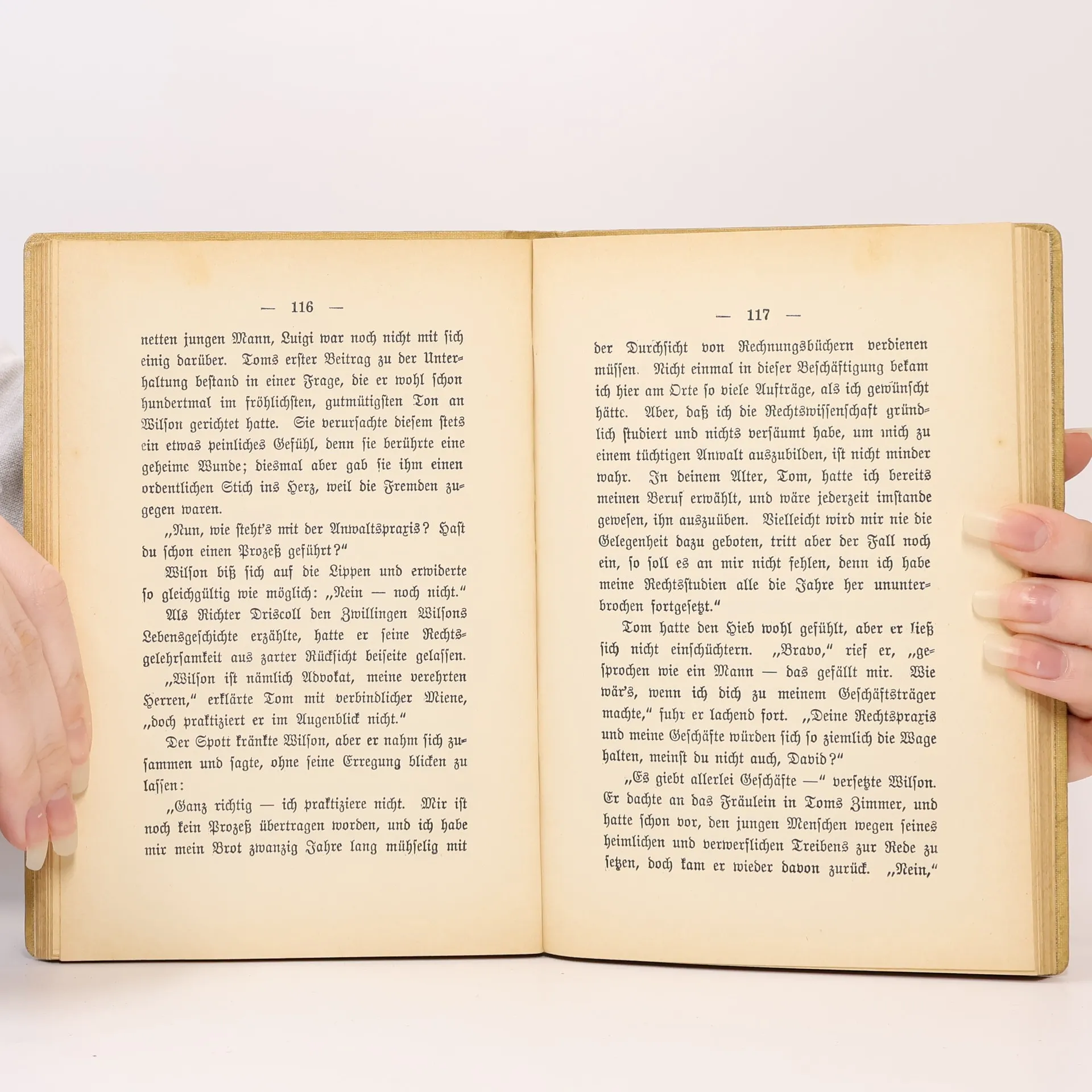 Mark Twain veröffentlichte 1894 diesen Roman als Satire auf rassistische Vorurteile. Die Söhne einer schwarzen Sklavin und eines Plantagenbesitzers werden bei der Geburt vertauscht. Während der falsche Chambers verwöhnt wird, wird der falsche Tom ein fleißiger Arbeiter. Ein Anwalt enthüllt später ihre wahre Identität.