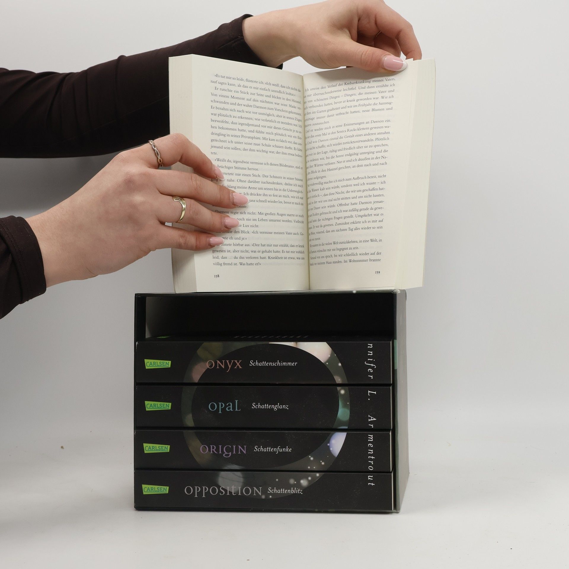 Katy zieht von Florida nach West Virginia und kämpft mit dem Umzug und der fehlenden Internetverbindung. Dort trifft sie den unfreundlichen, aber attraktiven Daemon Black, der ihr Leben verändert. Diese Sammlung enthält alle fünf Bände der Oblivion-Serie sowie Bonusgeschichten und markiert den Beginn einer fesselnden Liebesgeschichte.