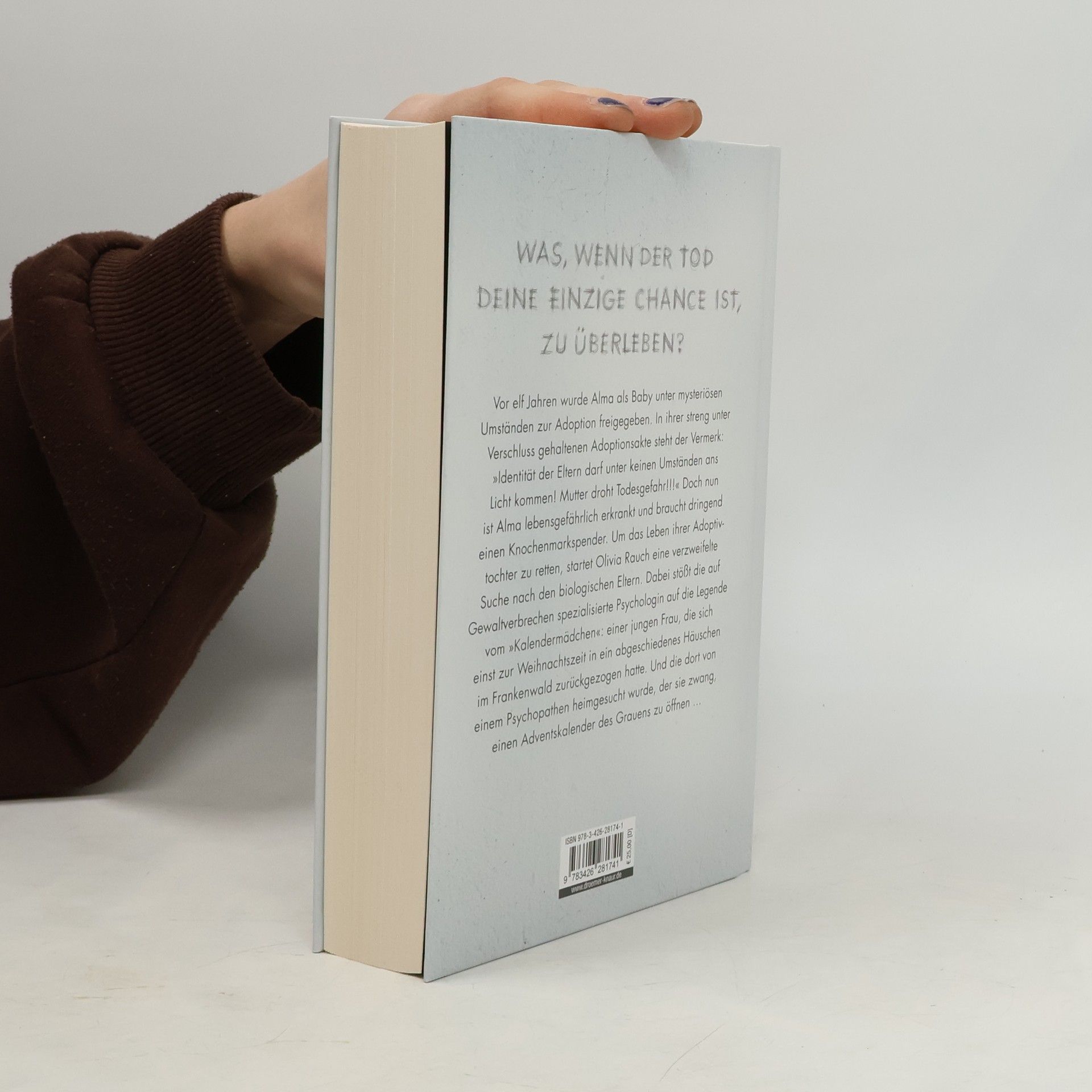 In "Das Kalendermädchen" von Sebastian Fitzek wird Alma, die als Baby zur Adoption freigegeben wurde, lebensgefährlich krank. Ihre Adoptivmutter Olivia sucht verzweifelt nach ihren biologischen Eltern, während sie auf die unheimliche Legende des "Kalendermädchens" stößt. Ein spannender Psychothriller, der auf drei Zeitebenen spielt.
