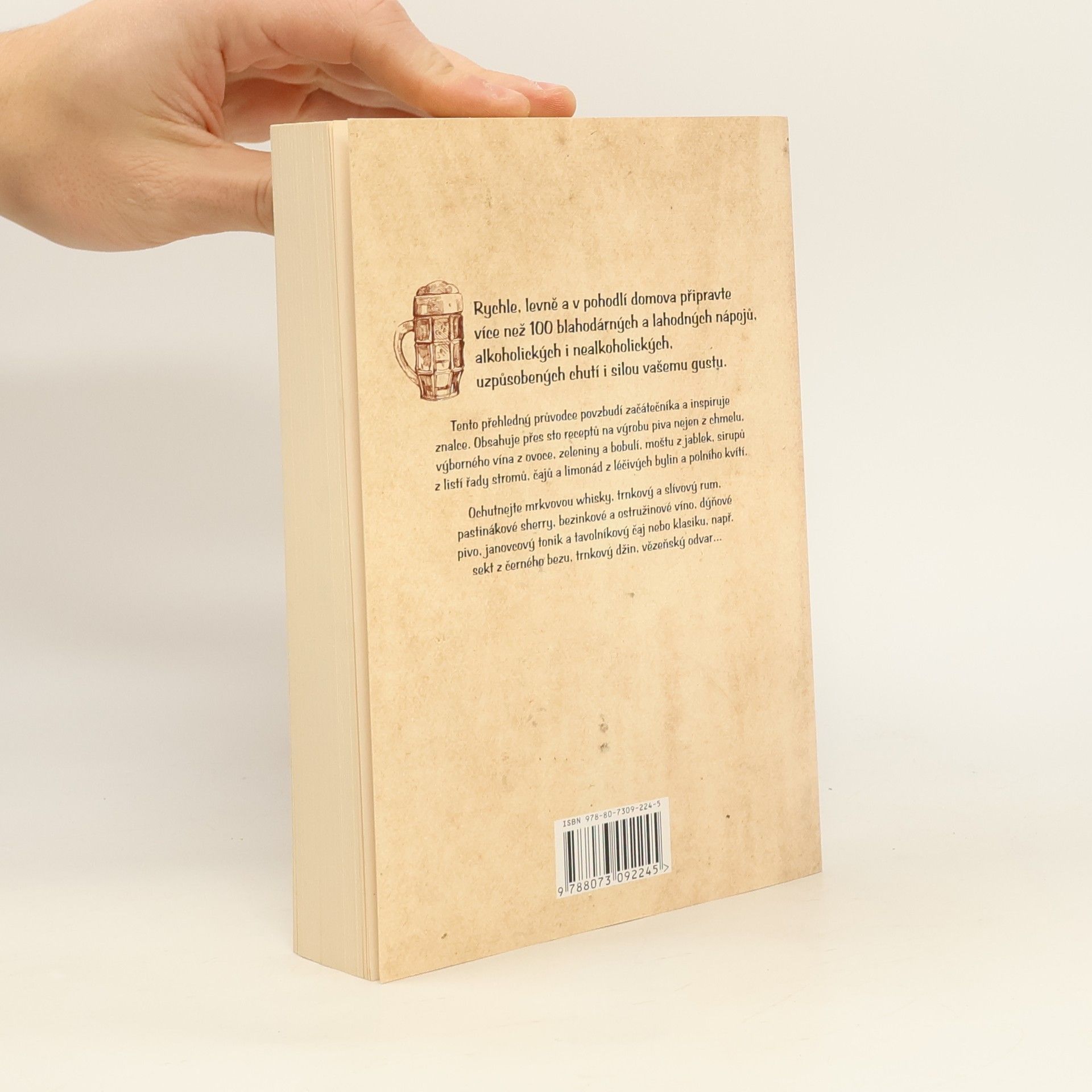Rychle, levně a v pohodlí domova připravte více než 100 blahodárných a lahodných nápojů, alkoholických i nealkoholických, uzpůsobených chutí i silou vašemu gustu. Tento přehledný průvodce povzbudí začátečníka a inspiruje znalce. Obsahuje přes sto receptů na výrobu piva nejen z chmelu, výborného víny z ovoce, zeleniny a bobulí, moštu z jablek, sirupů z listí řady stromů, čajů a limonád z léčivých bylin a polního kvítí. Ochutnejte mrkvovou whisky, trnkový a slívový rum, pastinákové sherry, bezinkové a ostružinové víno, dýňové pivo, janovcový tonik a tavolníkový čaj nebo klasiku, např. sekt z černého bezu, trnkový džin, vězeňský odvar...