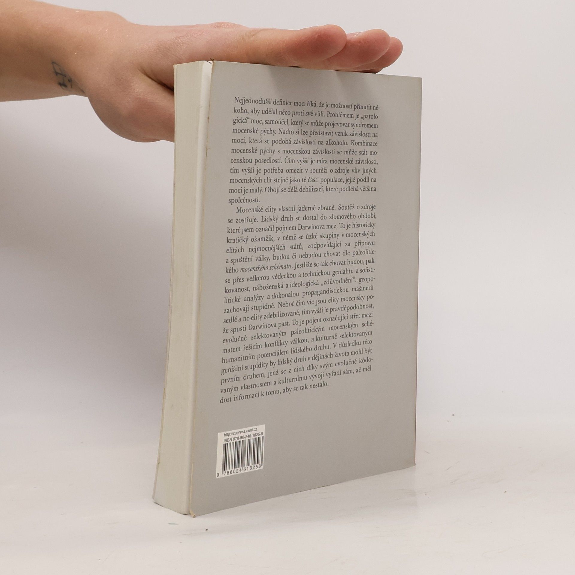 Moc lze jednoduše definovat jako schopnost přinutit někoho jednat proti své vůli. Tento výkon moci je součástí sociálního chování, avšak problém nastává, když se moc stává patologickou a projevuje se syndromem mocenské pýchy. Zatímco mnozí lidé konzumují alkohol, závislost na něm se vyvine jen u některých, což lze přirovnat k závislosti na moci. Kombinace mocenské pýchy a závislosti, spolu se skupinovou hloupostí, může vést k mocenské posedlosti. Členové mocenských elit mohou být závislí a posedlí, což zvyšuje potřebu omezit vliv jiných elit a populace s malým podílem na moci. Tento proces debilizace, který omezuje kognitivní disonanci, vytváří iluzorní pocit harmonie. Evoluce však pokračuje, i když o ní nevíme. V současnosti, kdy mocenské elity disponují jadernými zbraněmi, se soutěž o zdroje, jako jsou energie a voda, zostřuje. Lidský druh čelí zlomovému období, kdy se mocenské elity budou muset rozhodnout mezi paleolitickým mocenským schématem a humanitním potenciálem. Vysoká míra mocenské posedlosti a debilizace populace zvyšuje riziko konfliktu, který by mohl vést k sebezničení lidstva, přestože máme dost informací, abychom se tomu vyhnuli.