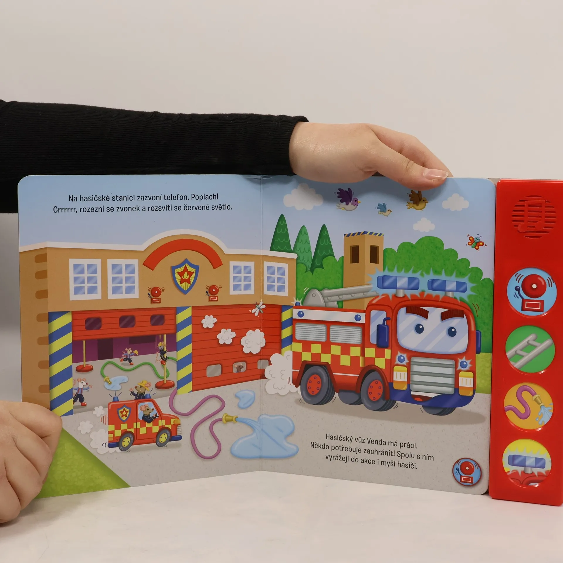 Knížka se zvukovou lištou ukazuje nejmenším dětem, kde všude pomáhají hasiči.