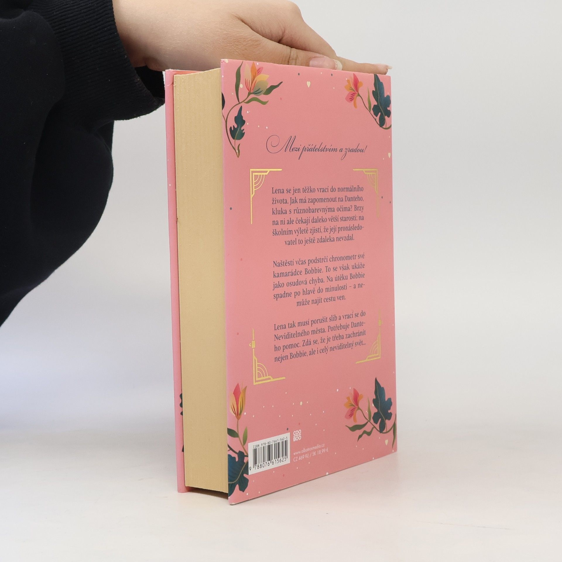 Mezi přátelstvím a zradou! Druhý díl série o cestování časem. Lena se jen těžko vrací do normálního života. Jak má jen tak zapomenout na Danteho, kluka s různobarevnýma očima? Brzy na ni ale čekají daleko větší starosti: na školním výletě zjistí, že její pronásledovatel to ještě zdaleka nevzdal. Na poslední chvíli se Leně podaří podstrčit chronometr, se kterým může cestovat časem, své kamarádce Bobbie. To se však ukáže jako osudová chyba. Na útěku Bobbie spadne po hlavě do minulosti - a protože cestovat časem neumí, nemůže najít cestu ven. Lena tak musí porušit svůj slib a vrací se do neviditelného města. Potřebuje Danteho pomoc. Její protivník je ale pořád aspoň o krok před ní a nyní musí Lena zachránit nejen Bobbie, ale i celý neviditelný svět...