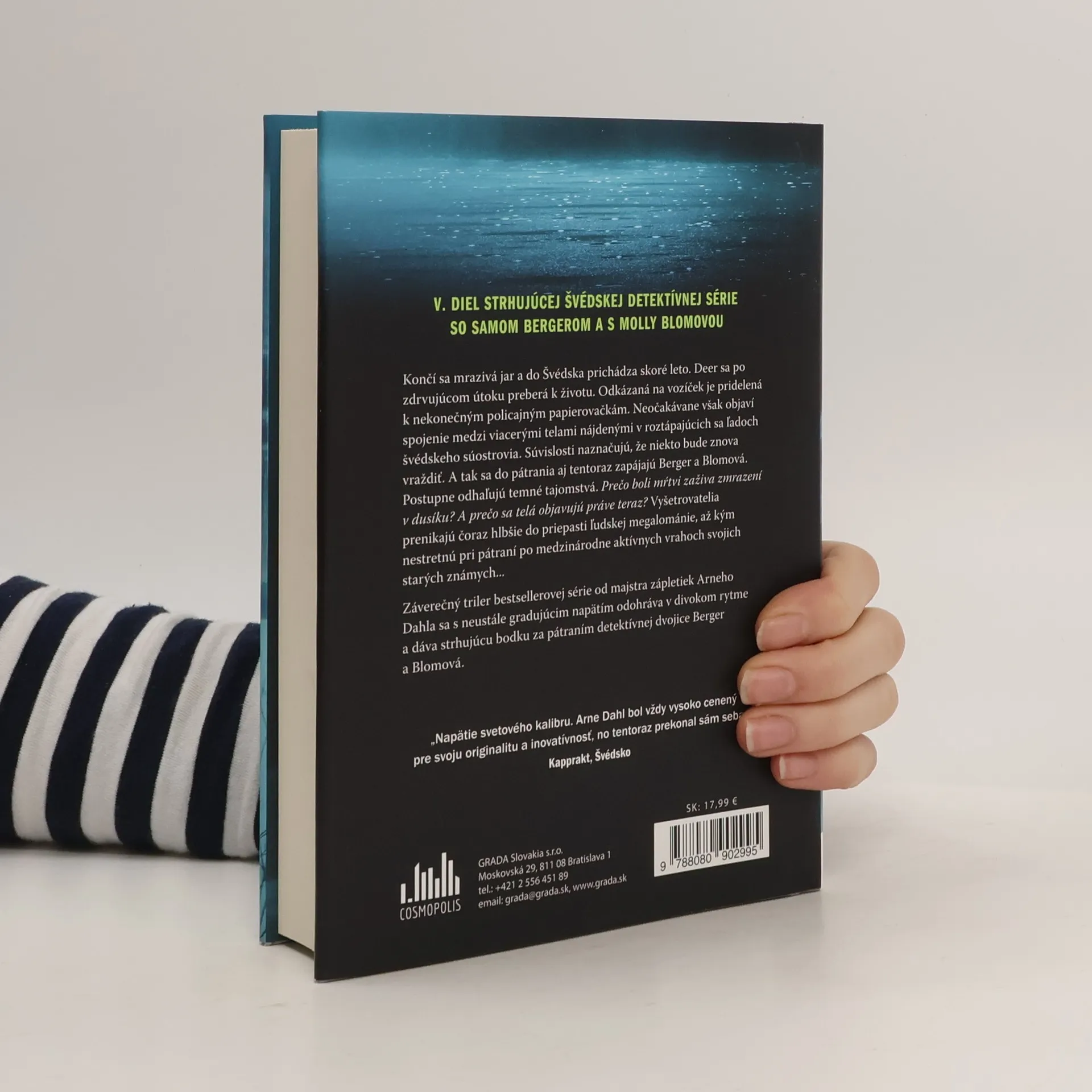 Končí sa mrazivá jar a do Švédska prichádza skoré leto. Deer sa po zdrvujúcom útoku preberá k životu. Odkázaná na vozíček je pridelená k nekonečným policajným papierovačkám. Neočakávane však objaví spojenie medzi viacerými telami nájdenými v roztápajúcich sa ľadoch švédskeho súostrovia. Súvislosti naznačujú, že niekto bude znova vraždiť. A tak sa do pátrania aj tentoraz zapájajú Berger a Blomová. Postupne odhaľujú temné tajomstvá. Prečo boli mŕtvi zaživa zmrazení v dusíku? A prečo sa telá objavujú práve teraz? Vyšetrovatelia prenikajú čoraz hlbšie do priepasti ľudskej megalománie, až kým nestretnú pri pátraní po medzinárodne aktívnych vrahoch svojich starých známych... Záverečný triler bestsellerovej série od majstra zápletiek Arneho Dahla sa s neustále gradujúcim napätím odohráva v divokom rytme a dáva strhujúcu bodku za pátraním detektívnej dvojice Berger a Blomová.