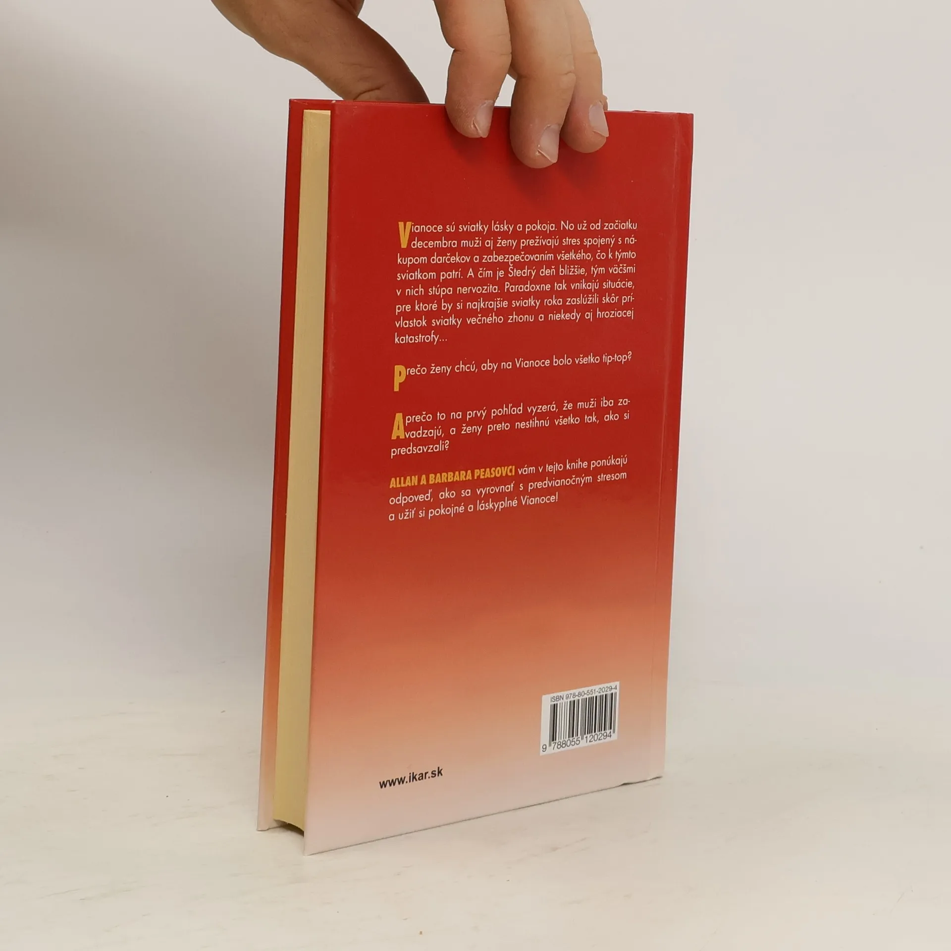 Vianoce sú sviatky lásky a pokoja. No už od začiatku decembra muži aj ženy prežívajú stres spojený s nákupom darčekov a zabezpečením všetkého, čo k týmto sviatkom patrí. A čím je Štedrý deň bližšie, tým väčšmi v nich stúpa nervozita. Paradoxne tak vznikajú situácie, pre ktoré by si najkrajšie sviatky roka zaslúžili skôr prívlastok sviatky večného zhonu a niekedy aj hroziacej katastrofy… Prečo ženy chcú, aby na Vianoce bolo všetko tip-top? A prečo to na prvý pohľad vyzerá, že muži iba zavadzajú, a ženy kvôli nim nestihnú všetko tak, ako si predsavzali? Allan a Barbara Peasovci vám v tejto knihe ponúkajú odpoveď, ako sa vyrovnať s predvianočným stresom a užiť si pokojné a láskyplné Vianoce!