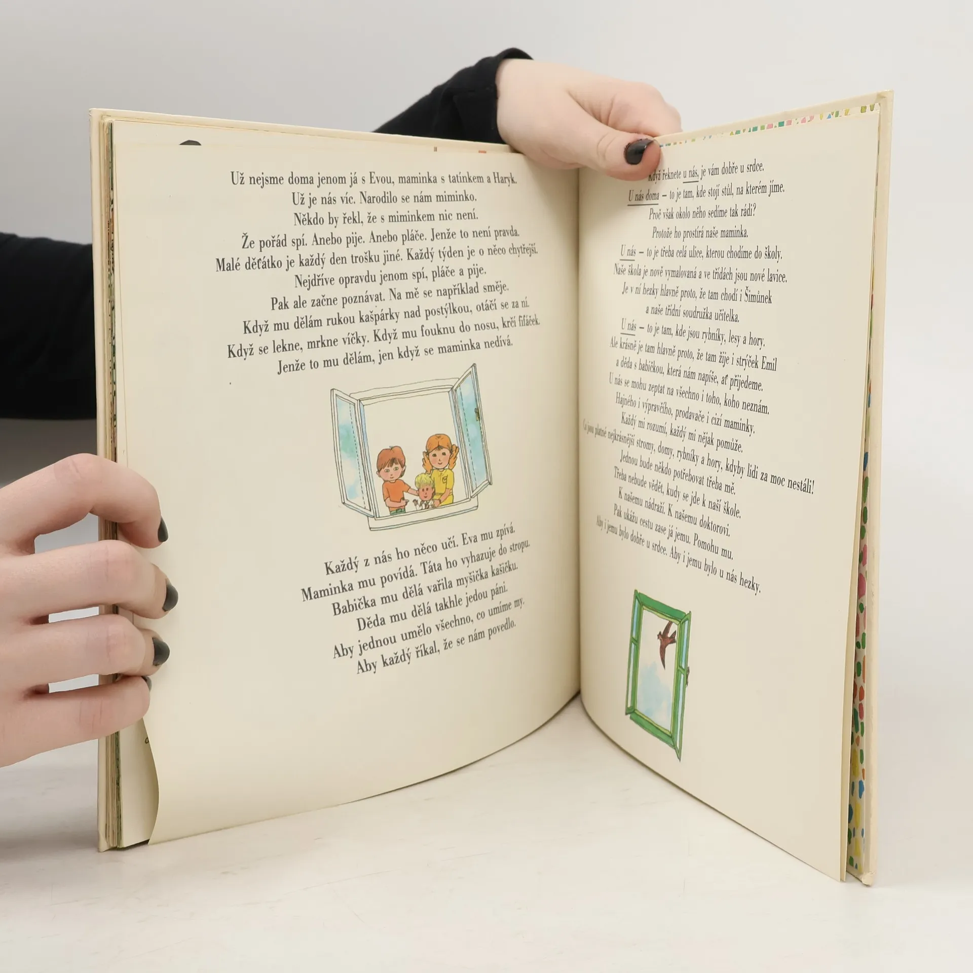 Otevřete si knížku jako okno a podívejte se, kolik zajímavých věcí se skrývá v napohled docela obyčejném světě docela obyčejné rodiny! Kde je kdo doma? Jak se jmenuje dcera syna tatínka mojí maminky? Proč je na světě hezky? Který je nejhezčí den v týdnu? Co se učí stromy v lesní školce? Musí být všude moře? Bohatě ilustrované vyprávění o drobných životních radostech pro nejmenší čtenáře, ale i pro jejich rodiče a prarodiče.