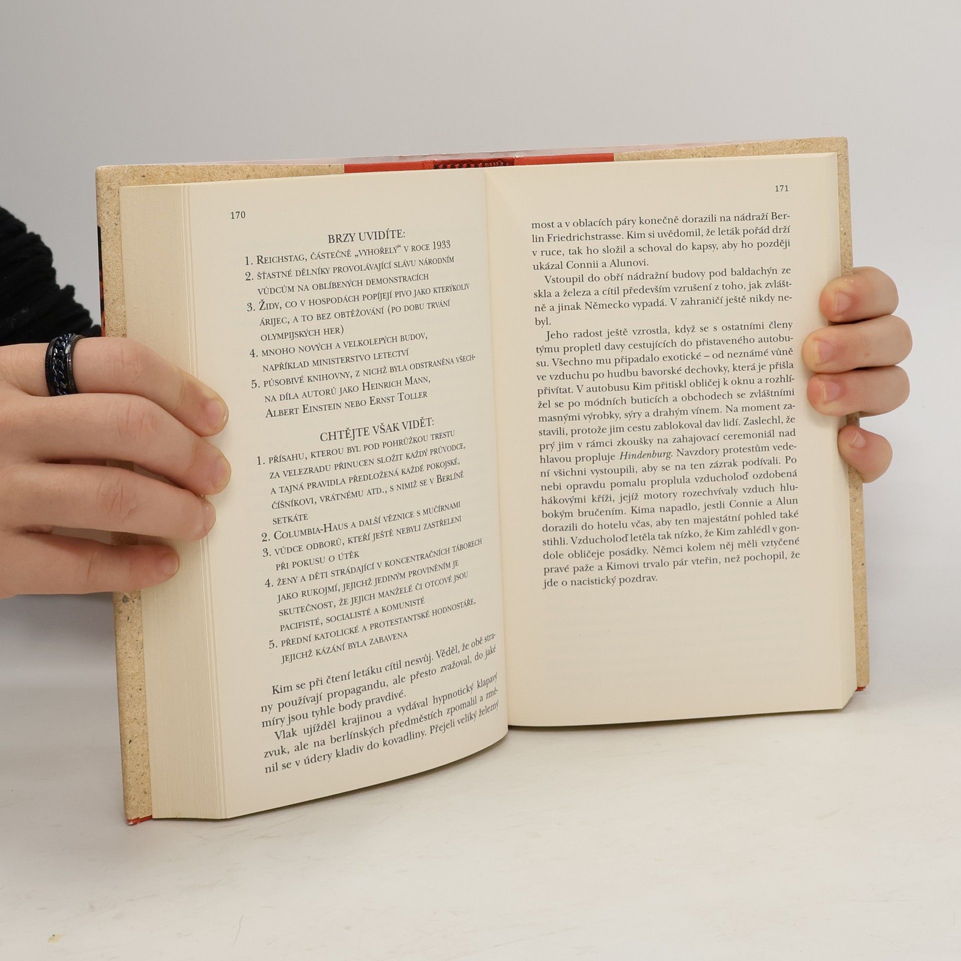 Leni Riefenstahlová, Hitlerův Berlín a olympijské hry Když německá filmová historička Sigrun Meierová v roce 2005 objeví vystřižené a nikdy nezveřejněné záběry, je to začátek cesty k dlouho pohřbenému tajemství, v němž hlavní roli sehrála sama Leni Riefenstahlová. Píše se rok 1933 a Evropa tají dech. Hitler upevňuje svoji moc a začínají přípravy na berlínskou olympiádu. Leni Riefenstahlovou – filmovou průkopnici a svobodomyslnou hvězdu Třetí říše – sám Hitler pověřil úkolem zachytit olympijské hry na filmový pás. Leni však brzy zjistí, že přízeň mocných je vrtkavá a životem si nemohou být jisti ani ti nejbližší. Kim Newlands, anglický atlet podporovaný Britskou unií fašistů, je celým srdcem oddaný své povrchní přítelkyni z vyšší společnosti Connie. Jeho touha získat olympijské zlato si však žádá svou daň a Kim je nucen zapřít, kým ve skutečnosti je. Velšského komunistu Aluna Pryce zase pověřili, aby britské fašisty infiltroval. Když se spřátelí s Kimem a Connií, musí se sám rozhodnout, zda účel skutečně světí prostředky. Leni dokáže prostřednictvím své kamery i pamětí manipulovat s pravdou. Ačkoli některé scény z vlastního života ráda ponechá na podlaze střižny, neznamená to, že jsou navždy ztraceny. Co se stane, když se osudy všech nevyhnutelně protnou právě v Berlíně, během olympijských her? Jaké tajemství Sigrun při svém pátrání odhalí?