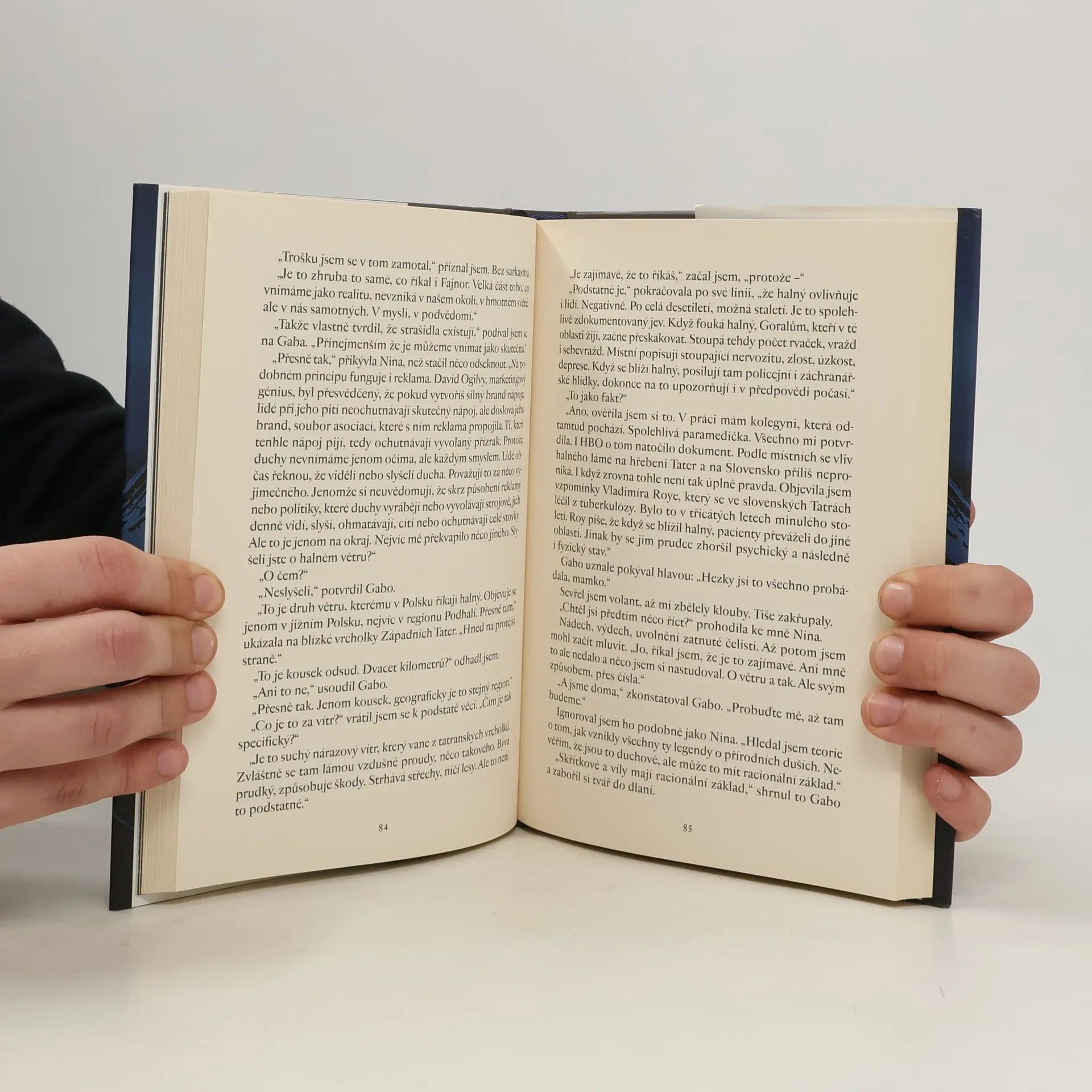 Noční jízda autem, okolo jen tma a liduprázdná pustina. A za tebou se žene vražedný, děsivý přízrak stařeny v pohřebních šatech, který je blíž, kdykoli zastavíš. Stačí chvíle, a máš ji zase v patách. Fenomén halného větru je v Polsku dobře známý a zdokumentovaný. Když fouká, stoupá počet násilností, nehod, vražd i sebevražd. Jak ale tento vítr souvisí s nebezpečným silničním úsekem na úpatí Západních Tater? A má něco společného s přízrakem stařeny v černém svrchníku, sukni a se šátkem na hlavě, který se tam zjevuje? Hrdinové nového mysteriózního thrilleru zažívají tu nejhorší noční můru. V pustém regionu polsko- -slovenského pohraničí je pronásleduje větrný démon, před kterým není úniku…