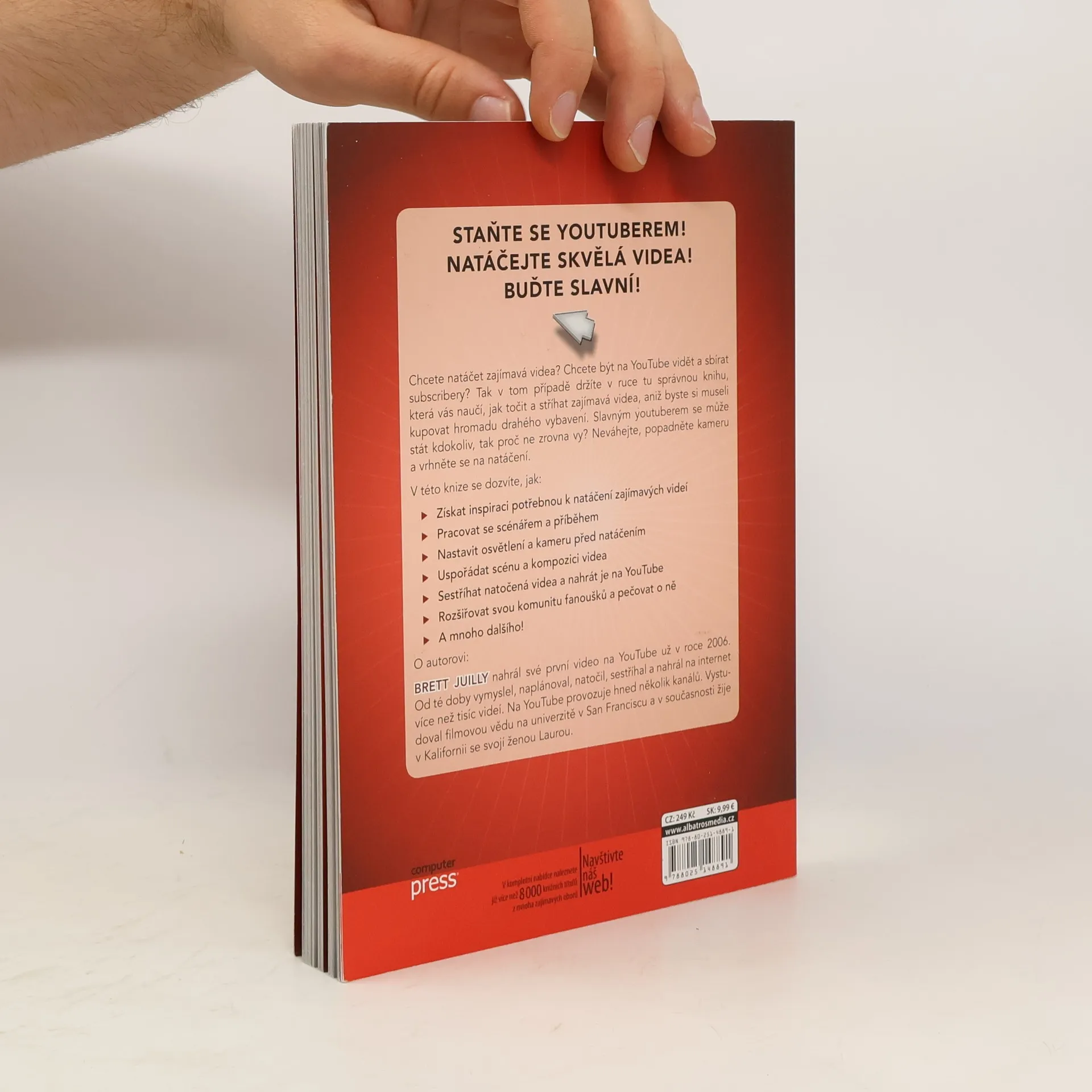 Chcete natáčet zajímavá videa? Chcete být na YouTube vidět a sbírat subscribery? Tak v tom případě držíte v ruce tu správnou knihu, která vás naučí, jak točit a stříhat kvalitní a zajímavá videa. Slavným youtuberem se může stát kdokoliv, tak proč ne zrovna vy? Neváhejte, popadněte kameru a vrhněte se na natáčení.