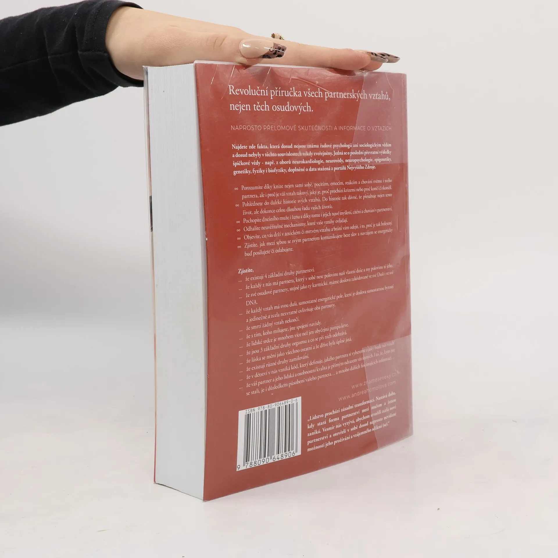 Kniha o vztazích, která změní váš život. Revoluční příručka všech partnerských vztahů, včetně těch osudových. Najdete zde naprosto přelomové skutečnosti a informace týkající se vztahů, fakta, která dosud nejsou známa řadové psychologii, ani sociologickým vědám, a dosud nebyla v těchto souvislostech nikdy zveřejněna. Jedná se nejen o poslední převratné výsledky špičkové světové vědy - např. z oborů neurokardiologie, neurovědy, neuropsychologie, epigenetiky, genetiky, fyziky a biofyziky, související se vztahy, ale i skutečnosti a souvislosti z duchovních věd. Kniha je výjimečná syntézou obou pramenů poznání a také tím, že vám zodpoví všechny otázky na téma partnerství, na které jste dosud hledali odpovědi, ale nenalezli je. Dozvíte se například, že DNA je neuroplastická, neboli že začínáme být schopni ji sami přepisovat svým vlastním vědomím. Že v DNA je uložen kód našich partnerů. Že žádný vztah nikdy neskončí, ani smrtí jednoho z partnerů. Že pouhou myšlenkou, i na vzdálenost tisíců kilometrů, ovlivňujeme tepovou frekvenci toho, na nějž s láskou pomyslíme a mnoho podobných převratných informací, které nebyly dosud zveřejněny v těchto souvislostech. Lze koupit na www.znameseveky.cz