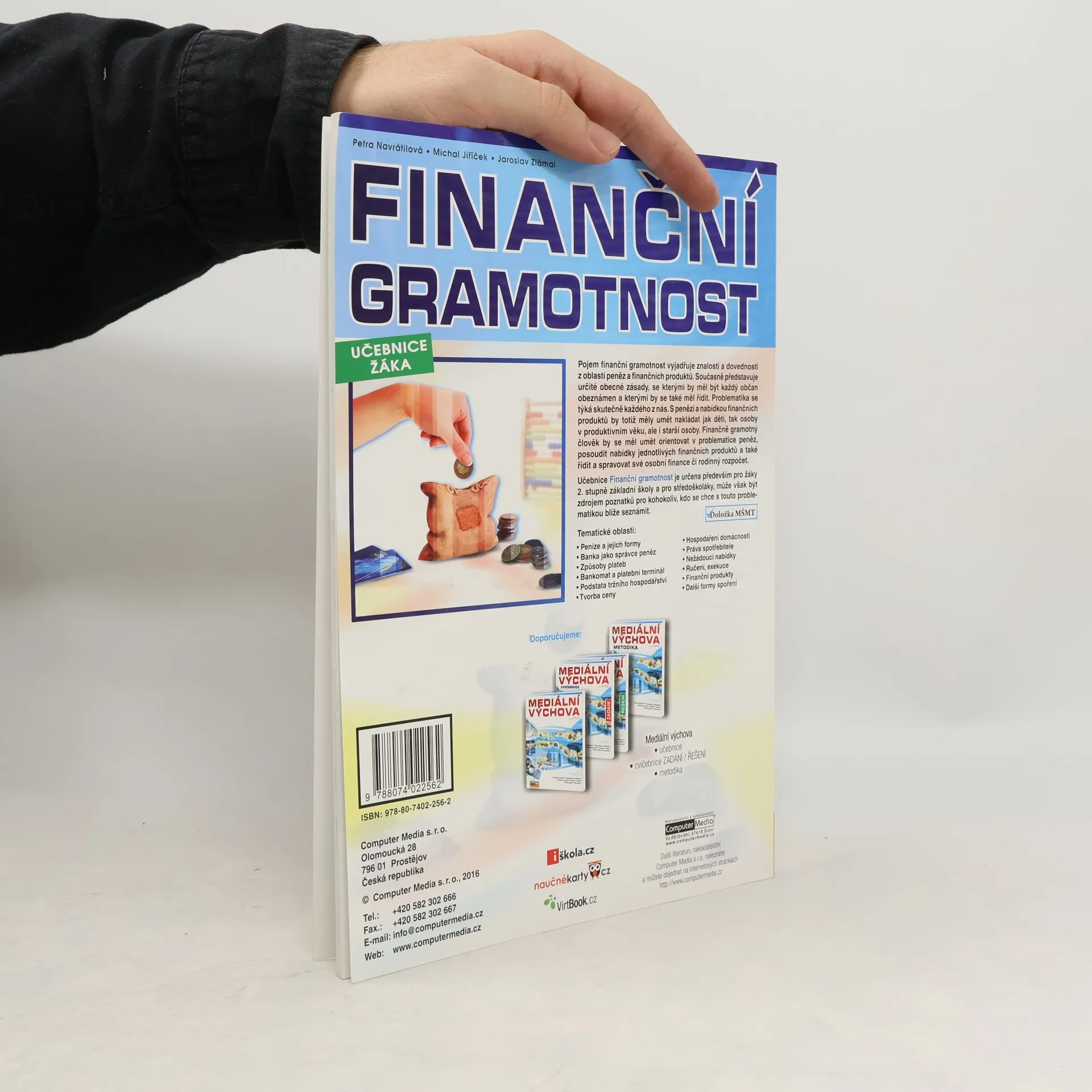 2. vydání populární učebnice finanční gramotnosti. Doložka MŠMT v jednání. Učebnice finanční gramotnosti. Zabývá se základními principy financí, funkcí peněz, druhy plateb, hospodařením domácnosti, bankami, finančními produkty apod. Publikace je celobarevná, plná cvičení, her, příkladů, názorných ukázek a obrázků. Titul vychází z RVP Základního vzdělávání. Problematika financí je přímou součástí vzdělávacích oborů Výchova k občanství a Člověk a svět práce.