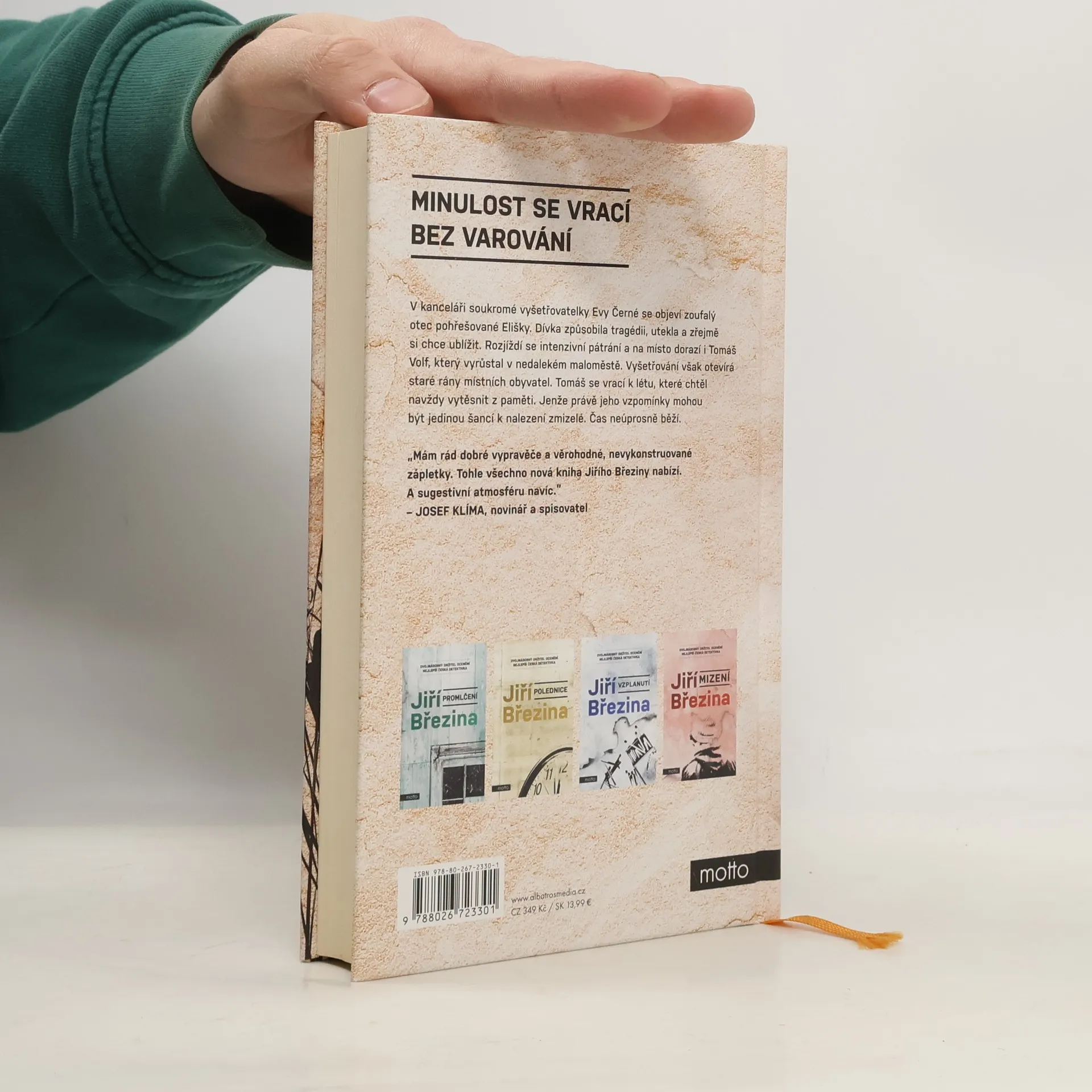 Minulost se vrací bez varování. Pátý případ Tomáše Volfa. V kanceláři soukromé vyšetřovatelky Evy Černé se objeví zoufalý otec pohřešované Elišky. Dívka způsobila tragédii, utekla a zřejmě si chce ublížit. Rozjíždí se intenzivní pátrání a na místo dorazí i Tomáš Volf, který vyrůstal v nedalekém maloměstě. Vyšetřování však otevírá staré rány místních obyvatel. Tomáš se vrací k létu, které chtěl navždy vytěsnit z paměti. Jenže právě jeho vzpomínky mohou být jedinou šancí k nalezení zmizelé. Čas neúprosně běží.Dvojnásobný držitel ceny za nejlepší českou detektivku Jiří Březina se v pátém případu Tomáše Volfa vydává do minulosti, která souvisí se současným případem nejen místem činu. Autor odhaluje dospívání hlavního hrdiny, které ovlivnilo jeho pohled na svět a přimělo ho k zásadnímu rozhodnutí.Tomáš Volf se opět setkává s Evou Černou, kterou přivede pátrání po pohřešované Elišce do jeho rodiště. Dívka způsobila tragédii, utekla a vše nasvědčuje tomu, že si chce ublížit. Vyšetřování však otevírá staré rány místních obyvatel. Tomáš se vrací k létu, které chtěl navždy vytěsnit z paměti. Jenže právě jeho vzpomínky mohou být jedinou šancí k nalezení zmizelé. Čas neúprosně běží a současnost až nepříjemně připomíná patnáct let staré události.