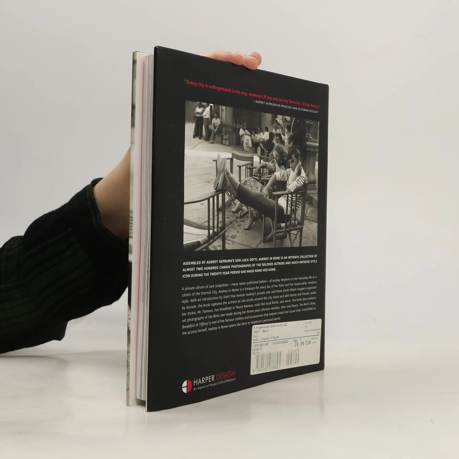 During the twenty years that she lived in Rome, Audrey Hepburn—legendary actress, fashion icon, and humanitarian—was the epitome of chic European style, from her little black dresses to her ballet flats. Her partnership with designer Hubert de Givenchy resulted in some of the most memorable and timeless looks on film. Audrey in Rome is a gorgeous coffee table book that includes almost 200 candid photographs of the movie star--many of which have never been published before. These rare snapshots give us glimpses into the everyday life of the gamine star of such classic films as Roman Holiday, Breakfast at Tiffany’s, Sabrina. Edited by her son, Luca Dotti, and Ludovica Damiani, film and theater writer and producer, and with text by fashion director and stylist Sciascia Gambaccini, Audrey in Rome is as personal as having Audrey Hepburn's family scrapbook in your hands.